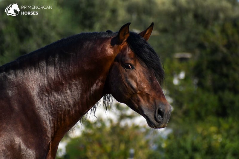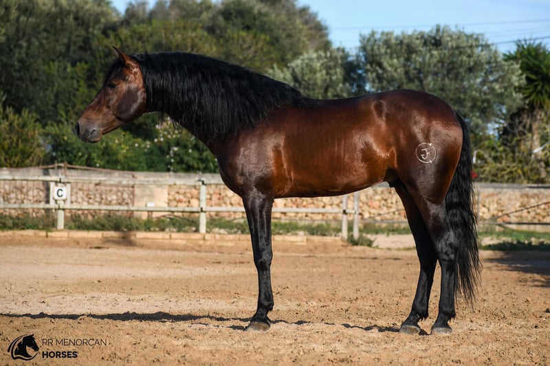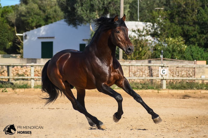 Dieser wunderschöne Pura Raza Española Hengst, geboren im Jahr 2019, besticht durch seine natürliche Eleganz und sein klassisches Erscheinungsbild. Mit einer Schulterhöhe von 1,64 m verfügt er über eine harmonische und funktionale Statur, die sowohl für die klassische Dressur als auch für die menorquinische Dressur ideal ist. Sein Ausbildungsstand ist mittel, er bewegt sich sicher im Schritt, Trab und Galopp und beherrscht seitliche Übungen sowie die Anfänge der Piaffe. Zudem zeigt er eine sehr gute Haltung beim spanischen Schritt. Im menorquinischen Grundgang arbeitet er ohne das sogenannte „bot“ und zeigt stets große Bereitschaft zum Arbeiten. Er hat an der ESPRE-Prüfung teilgenommen, sowohl in Morphologie als auch in Funktionalität, und überzeugt durch seine positive Einstellung. Mit einem edlen und kooperativen Charakter besitzt er eine natürliche Sensibilität, die ihn besonders empfänglich für den Reiter macht. Daher ist er ideal für jemanden, der sanft und respektvoll reitet, um eine besondere Verbindung auf Basis gegenseitigem Vertrauen aufzubauen. Er ist an das Leben in der Box gewöhnt, lebt zusammen mit anderen Pferden und Hengsten und geht regelmäßig auf die Bahn sowie ins Gelände, allein oder in Gesellschaft. Er zeigt sich kontaktfreudig gegenüber anderen Pferden, behält aber stets die Kontrolle und den Respekt. Das Pferd ist geimpft, entwurmt und befindet sich in Menorca. Wir organisieren den gesamten Verkaufsprozess, inklusive tierärztlicher Untersuchung, Dokumentation und internationalem Transport. 📩 Kontaktieren Sie uns für weitere Informationen, Fotos und Videos. Viele Grüße!