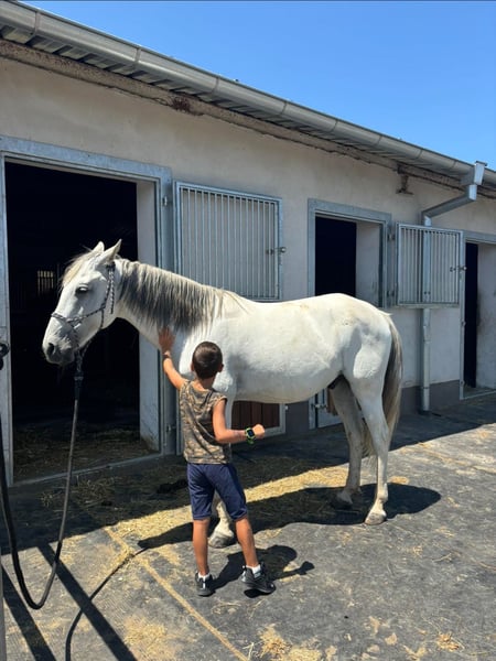 Beautiful grey gelding with official Portuguese registration and verified pedigree. Well-educated for Western riding, calm and responsive under saddle. Excellent manners, easy to handle, and enjoys both arena work and trail rides. This horse combines the refined elegance of Portuguese breeding with Western versatility — making him ideal for leisure, pleasure riding, or light competition. Healthy, athletic, and with a kind, cooperative nature.