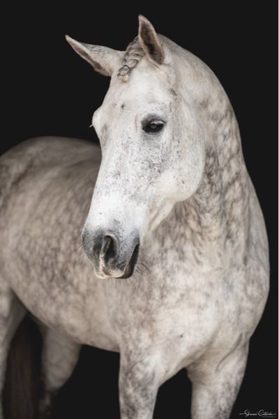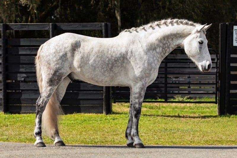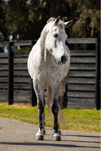 ONLINE AUCTION Place your bids at www.PlatinumEquineAuction.com Starting Bid $3500 Auction ends June 30th, 2024 Need a new saddle? Check out White Rock Saddles on our website or Facebook! Aladdin is a gorgeous grey 9yr Friesian x Andalusian gelding standing 16.1h. Aladdin trains in dressage and has been to several big shows including the World Equestrian Center. He has shown at training level and also schools leg yielding, shoulder-in, travers, reinback, turn on the haunches, simple changes, and collections and extensions within the gaits. Aladdin is a brave and curious horse, always well-mannered in new places. He cross trains in jumping, cross country, trail riding, and trail obstacle. He would be a great prospect for working equitation or eventing. Aladdin is a sweet boy with a big playful personality. Always a doll for grooming, bathing, tacking, clipping, etc. He is up-to-date on shots, Coggins, floating, deworming, sheath cleaning, and hoof trimming. If you have any questions about this beautiful dappled grey Friesian x gelding, please call Show Me Sport Horses Rachel 352-467-5695. Aladdin is located in Ocala, Florida and shipping can be arranged anywhere in the country. ONLINE AUCTION Place your bids at www.PlatinumEquineAuction.com Starting Bid $3500 Auction ends June 30th, 2024 Need a new saddle? Check out White Rock Saddles on our website or Facebook!