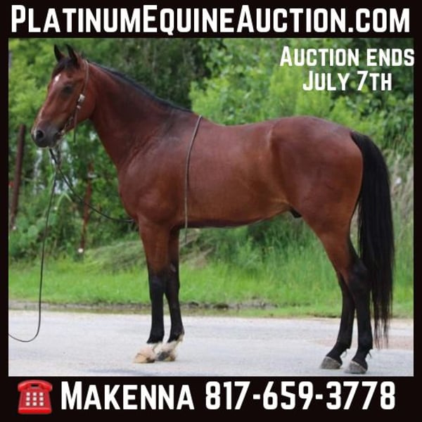 ONLINE AUCTION Place your bids at www.PlatinumEquineAuction.com Starting Bid $3500 Auction ends July 7th, 2024 Need a new saddle? Check out White Rock Saddles on our website or Facebook! Here’s something a little different! Reed is a 10 year old bay gelding standing 15.1 hands. Reed is an Andalusian Lusitano cross that has been ridden and shown in dressage classes. He’s been used and ridden at numerous Spanish festivals and Charro Rodeos as well as The Spanish bull fights in the Ft Worth Area. Reed is a blast to ride, he walk/trots/lopes both ways beautifully, loves going on trail rides alone or with others! Hes safe for just about anyone to ride! He is a truly remarkable and gorgeous horse. He’s easy to be around with no bad habits and sells 100% sound. Don’t miss out on an opportunity to own a one of a kind type horse. Located in Stephenville TX. We can help arrange hauling anywhere in the US, Hawaii, Canada and select other countries! For more information, call or text Makenna Hartzel 817-659-3778. ONLINE AUCTION Place your bids at www.PlatinumEquineAuction.com Starting Bid $3500 Auction ends July 7th, 2024 Need a new saddle? Check out White Rock Saddles on our website or Facebook!