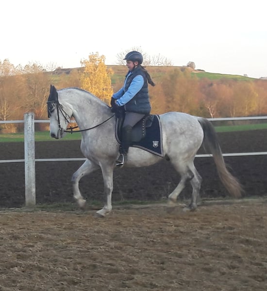With a heavy heart I offer my 1.66m tall, beautiful, honest Andalusian. He will be 10 years old in May. I bought it as a pure PRE. However, his parents were no longer licensed and thus he "only" got Cruzado papers. According to the previous owner, he got a professional vaquero ride at a young age. With us he is ridden alone and in a group in the terrain and on the square. We are pure recreational riders. Nevertheless, it is not suitable for beginners!!! He is easy on the aids. However, can not handle pressure well. When galloping, it can heat up. However, we are not really busy. He loves to work! Side passages and traversal shifts are no problem for him. He also makes forehand and hindquarters in the twinkling of an eye. Unfortunately, he has kissing spines. According to the veterinarian, his future rider should not weigh more than 70kg. In addition, you should always ensure sufficient back muscles and a suitable saddle. This is how the process is stopped! There are also horses in the sport that go with Kissing Spine, which I do not wish for him. It was noticed by a trainer who pointed out his crooked tail posture and said that I should have X-rays taken for safety in order to be able to adjust his training to it. With us he stands in an open stable. I would like to see that for him again. It is absolutely not an emergency sale! So no "last price" requests! Also, it is only handed in if everything fits. The equestrian skills must be present! He would show it to me at a trial anyway! For the trial preparation I allow myself to charge an amount of 25, - Euro. I hope to prevent equestrian tourism in this way! If you have any further questions, please contact us! The pictures don't really do him justice and it's really not easy for me to give him up. The charisma under the saddle becomes more beautiful with the skill of the rider ,-)