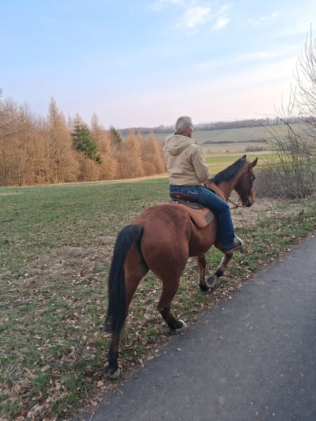 Wir suchen für unseren 15 jährigen Wallach Valeroso ein liebevolles neues Zuhause. Er ist ein gut ausgebildetes Doma Vaquera Pferd mit sehr vielen Platzierungen. Valeroso ist ein absolutes Verlasspferd im Gelände - kein go! Für weitere Fragen 0151-52959965