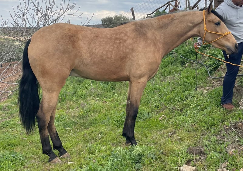 Verkaufe jungen Andalusier-Wallach, geb. 2023, in der edlen Farbe Falbe. Mit einem Stockmaß von 155 cm. Er ist perfekt für den Freizeitbereich geeignet. Der junge Wallach zeigt sich bereits jetzt als vielversprechender Freizeitbegleiter, der durch seine freundliche Art und sein angenehmes Temperament überzeugt. Er kennt Reitergewicht und ist gelassen im Umgang und eignet sich ideal für Reiter, die einen zuverlässigen Partner für entspannte Ausritte und Freizeitaktivitäten suchen. Für weitere Informationen stehe ich gerne zur Verfügung.