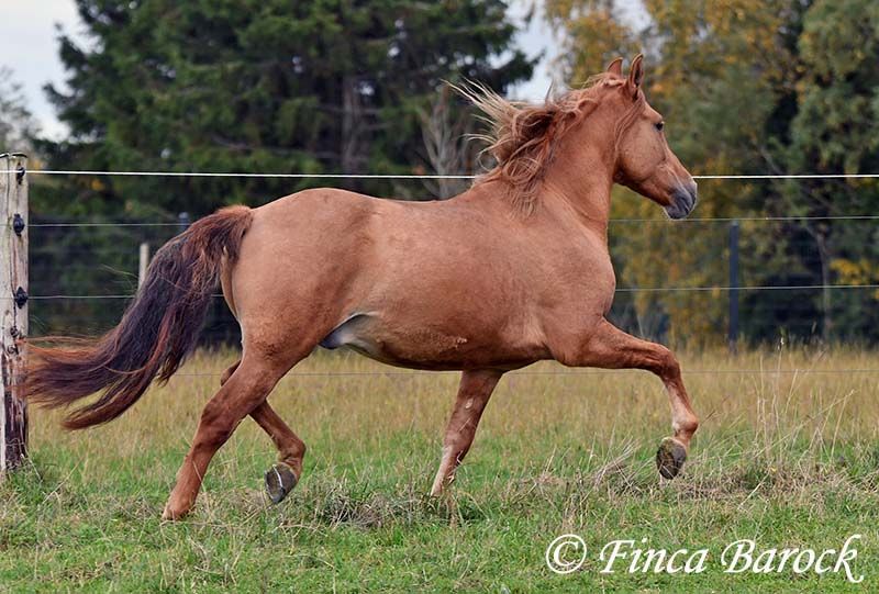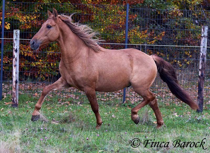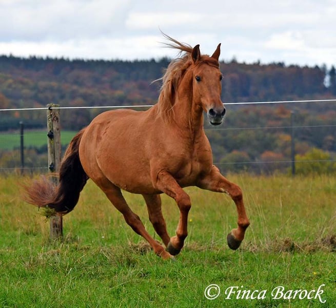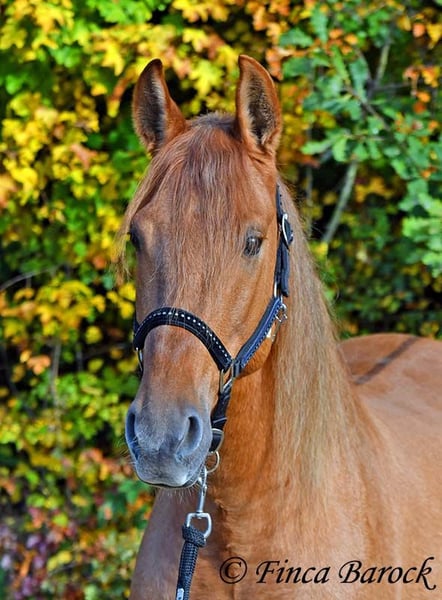 Breed: Andalusian Name: Felipe Gender: Gelding Height: 15.1 hh (154 cm) Date of Birth: August 5, 2022 Color: Chestnut Price: €7,500 Sire: Unknown Dam: Unknown Felipe is a wonderfully affectionate young gelding with a distinctive coat. His friendly nature quickly wins everyone over. He loves grooming, scratching, and cuddling. Felipe is at the beginning of his training, familiar with lunging with saddle, and has been introduced to the bit and bridle on a cavesson. He is gradually getting to know the seriousness of life with us, always at his own pace, and is slowly being backed. He is playful with other horses but remains friendly and easy to handle. Overall, Felipe is a playful colt who enjoys free work and walks. He remains very relaxed around tractors and even barking dogs do not bother him. A compact, raw diamond ready for the next chapter of his life. Includes veterinary clinical examination and X-rays. Contact: Finca Barock, Tel. 0173-696 31 81, 56291 Wiebelsheim