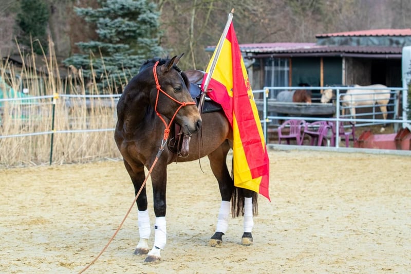Zum Verkauf steht unser außergewöhnlich lieber 4-jähriger Andalusier Wallach in der seltenen Farbe Goldfalbe mit einem Stockmaß von 155 cm. Dieses Pferd überzeugt nicht nur durch sein einmaliges Erscheinungsbild, sondern vor allem durch sein ausgeglichenes, nervenstarkes Wesen. Der Wallach befindet sich in der altersgerechten Grundausbildung und arbeitet zuverlässig und motiviert unter dem Sattel mit. Besonders hervorzuheben ist sein absolut unerschrockenes Verhalten: Er bleibt auch in ungewohnten Situationen ruhig und gelassen. Bereits jetzt wird er von Kindern mitgeritten und zeigt sich dabei stets brav, zuverlässig und aufmerksam. Der tägliche Umgang gestaltet sich unkompliziert, da er sehr menschenbezogen, freundlich und angenehm im Handling ist. Auch das Verladen bereitet ihm keinerlei Schwierigkeiten. Er kennt den Umgang mit Hunden und Kindern und fügt sich problemlos in den Stallalltag ein. Durch seine hervorragende Einstellung eignet er sich sowohl für Familien, Freizeitreiter als auch für Reiter, die ein junges Pferd mit viel Potenzial weiter fördern möchten. Videos und weitere Fotos stelle ich bei ernsthaftem Interesse gerne zur Verfügung.
