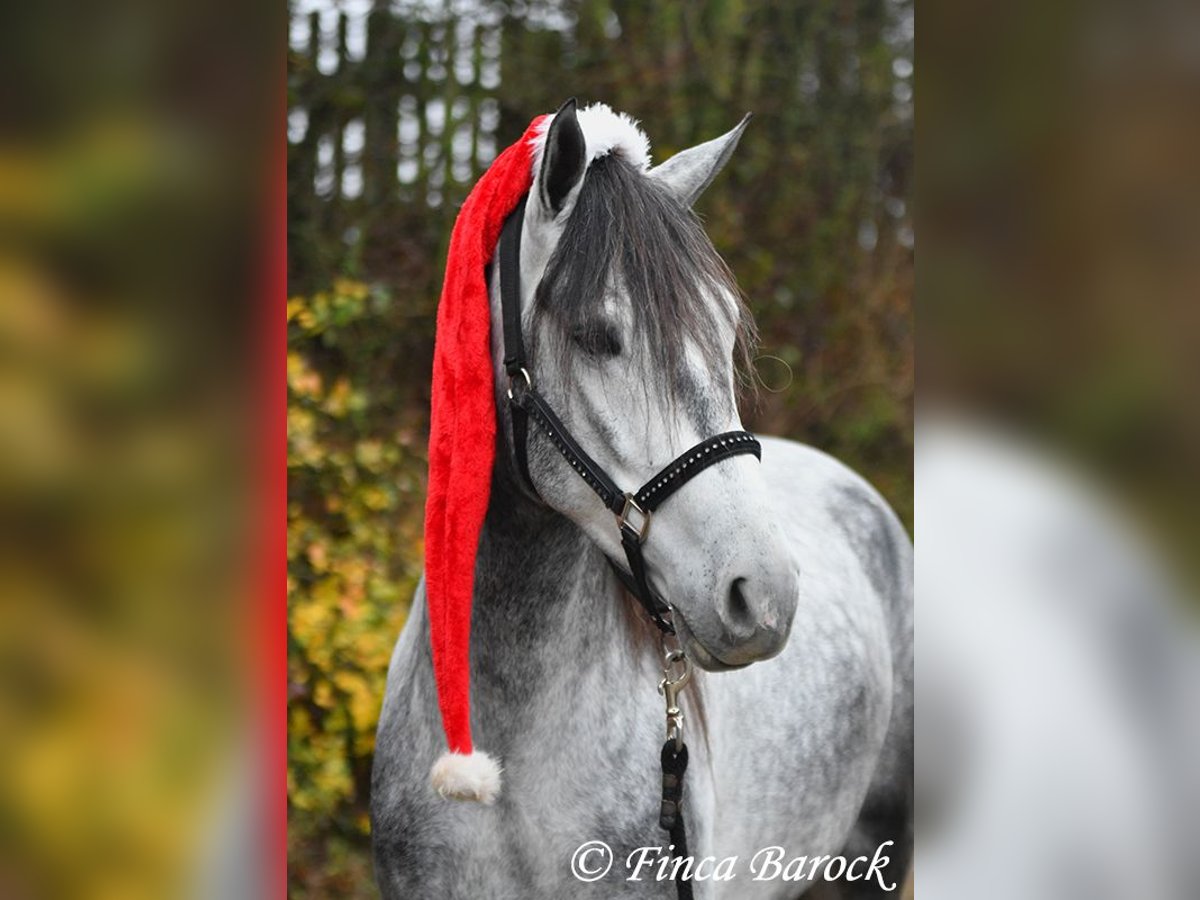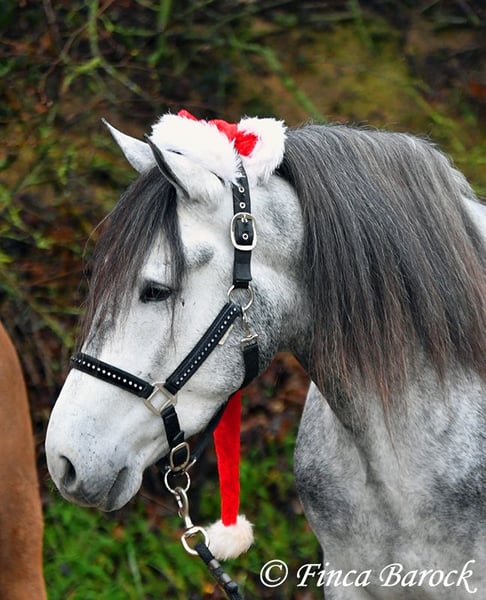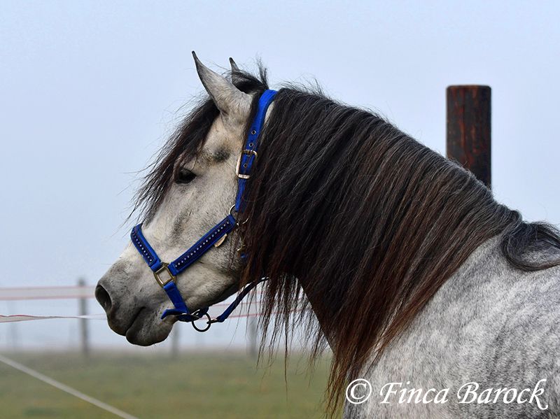 Rasse: Andalusier Name: Espartano Geschlecht: Wallach Stockmaß: 156 cm Alter: 21.11.2018 Farbe: Schimmel Preis: 9500 € Vater: o. P. Mutter: o. P. Espartano, ein echter Hingucker mit sehr sanftem, freundlichem Charakter. Espartano ist im November 4 Jahre alt geworden. Er bringt bereits jetzt eine hohe Grundcoolness mit und liebt Schmuseeinheiten. Espartano ist solide in den GGA geritten. Er kennt mehr Gelände als Viereck und lernt aktuell bei uns mehr Routine im Viereck kennen. Er zeigt sich auch unter etwas unsicheren Reiter ausgesprochen anständig und wohlwollend. Draußen erleben wir Ihn ausgesprochen gelassen, egal ob bellende Hund am Zaun, Fahrradfahrer oder Autobahnbrücke – Espartano nimmt die neuen Dinge war, lässt sich aber schnell überzeugen das alles normal ist. Dazu hat er sitzbequeme Bewegungen und vermittelt einfach ein klasse Reitgefühl! Ein toller, kompakter Bub, mit unglaublich freundlichem Blick und toller Halsung. Er steht noch voll in der Entwicklung und wird noch weiter Auslegen und etwas Wachsen. inkl. klinischer tierärztlicher Untersuchung und Röntgenbildern Kontakt: Finca Barock, Tel. 0173-696 31 81, 56291 Wiebelsheim