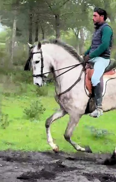 Dieser tolle Wallach hat neben dem spanischen Blut auch arabische Vorfahren (Hispano-Araber mit Passport) Er vereint das Beste beider Rassen und ist leichtfüssig und nervenstark. PALO ist wunderbar zu reiten und auch im Strassenverkehr routiniert. Die Zäumung auf dem Video ist traditionell, aber natürlich kann man Palo aufgrund von seinem Charakter schnell auf jede gewünschte Zäumung umstellen. Einfach ein "easy going" Pferd. Nähere Infos gerne unter WhatsApp 0175 861 45 35 Kerstin
