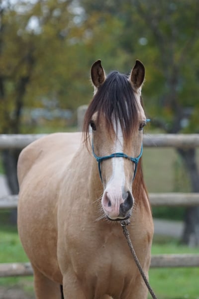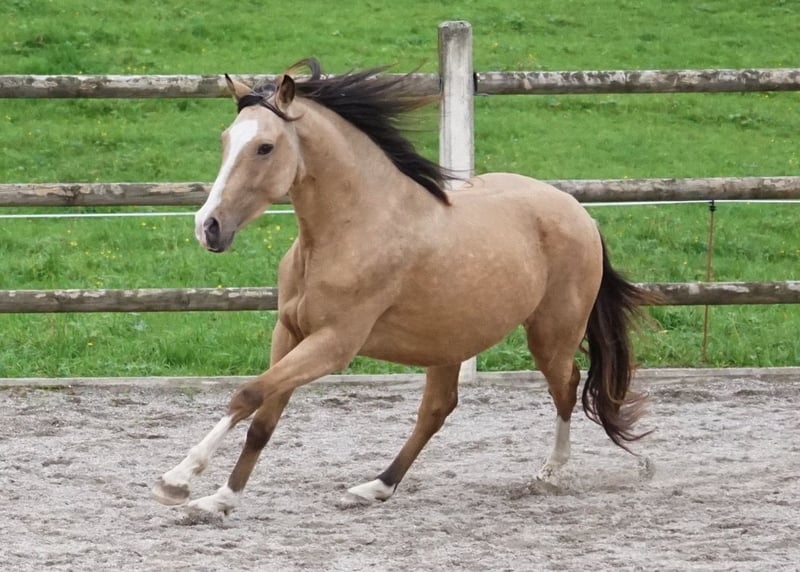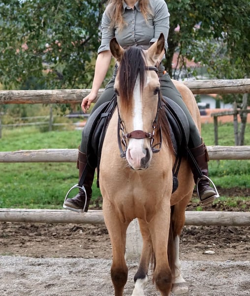 Rafalin wird im Frühjahr 4 Jahre alt. Dieser schicke Falbe ist ein wahrer Herzensbrecher und ein Freund fürs Leben. Sanftmütig, menschenbezogen, absolut charmant und liebenswert. Er zeigt sich völlig unklompliziert in der Ausbildung, er wurde mit viel Zeit vom Boden aus ausgebildet kennt die Freiarbeit und hatte schon einige Geländeritte am langen Zügel. Er geht problemlos voraus, geht auch schon durchs Wasser. Im Gelände ist er unerschrocken und wirklich sehr trittsicher. Er wurde sehr schonend, gebisslos angeritten; zeigt sich während des Beritts völlig unkompliziert. Er ist absolut gesund, hat tolle Hufe. Vor ca. 1,5 Jahren wurde eine AKu mit 14 Röntgenaufnahmen gemacht – alles unauffällig. Absolut herdenverträglich und Offenstallhaltung gewöhnt. Aktuell läuft er barhuf, kommt gut damit zurecht. Er kennt Horsemanship und lässt sich problemlos verladen. Für Rafalin wünschen wir uns einen erfahrenen, kompetenten Pferdemenschen mit viel Herz und dem nötigem Budget, ihm einen schönen Platz in Herdenhaltung bieten zu können. Weitere Infos auf Anfrage.