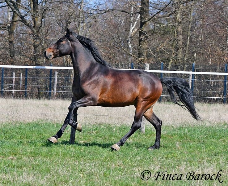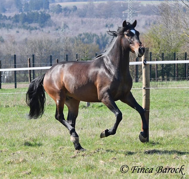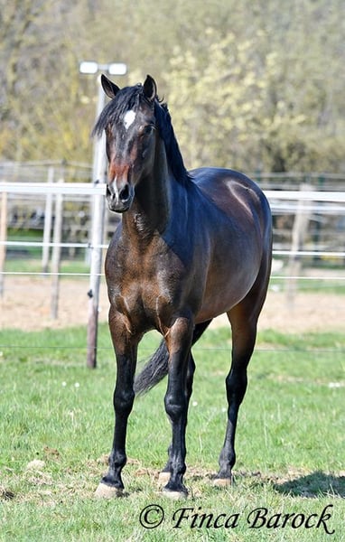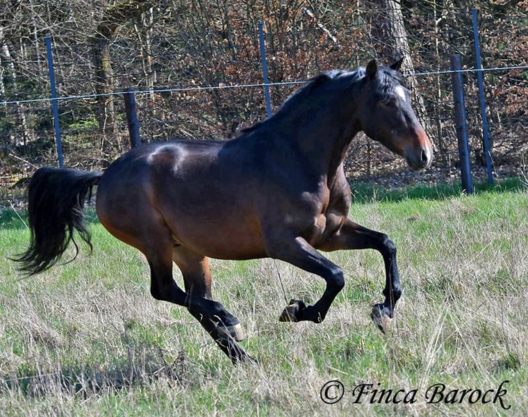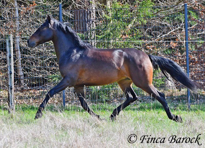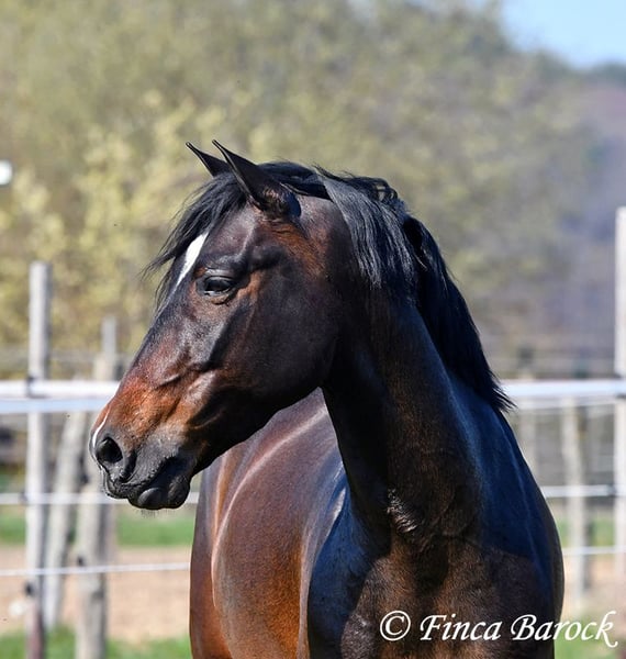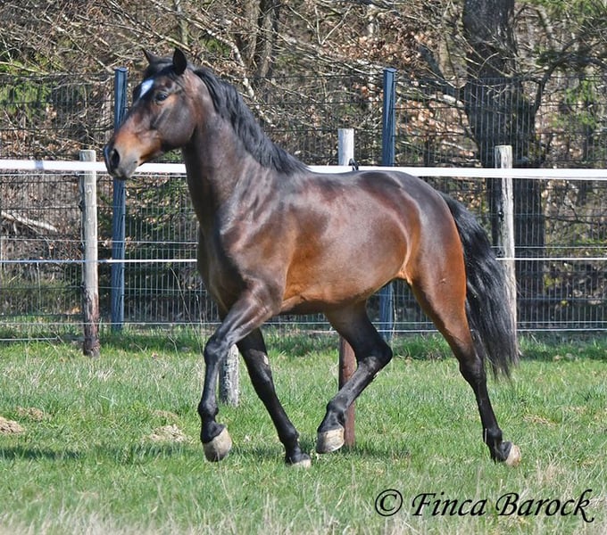 Ras: Andalusiër Naam: Spiri Geslacht: Ruin Maat: 1,53 m Geboren: 01-12-2021 Kleur: Bruin Prijs: € 9.500 Vader: O. P. Moeder: O. P. Spiri, is een echte blikvanger! Hij combineert veel expressie met een vriendelijke aard. Hij is nog in opleiding. Hij kent de basisgangen zowel in de bak als in het terrein. Ondanks zijn jonge leeftijd geeft hij al een zeer prettig ruitergevoel. Hij is eerder het type paard dat stil blijft staan dan wegloopt als er iets engs is. Daarnaast beschikt hij over een lieve en aangename omgangsvorm ❤️ Spiri is nog volop in groei en zal zich verder ontwikkelen. Met hem krijgt u een echte eye-catcher die ernaar uitkijkt om de wereld te verkennen. Inclusief klinisch onderzoek en röntgenfoto’s Contact: Finca Barock, Tel. 0173-696 31 81, 56291 Wiebelsheim