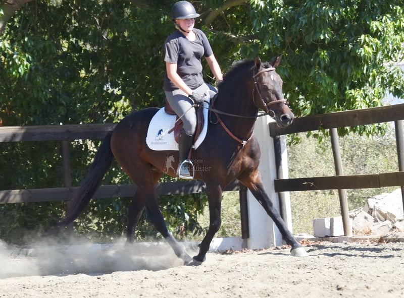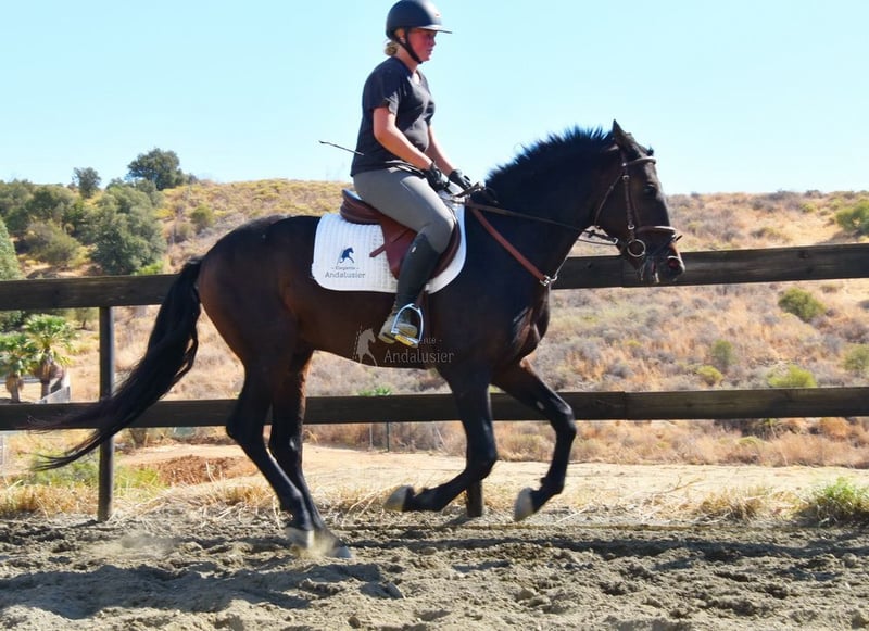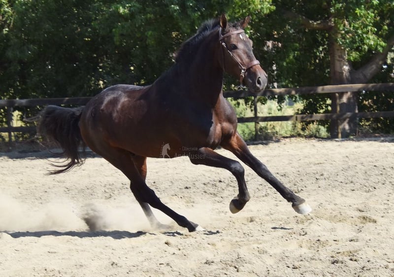 lieber Charakter, in den Grundgangarten geritten und Gelände, steht draußen, gute Bewegungen, hat bereits eine klinische AKU www.elegante-andalusier.com
