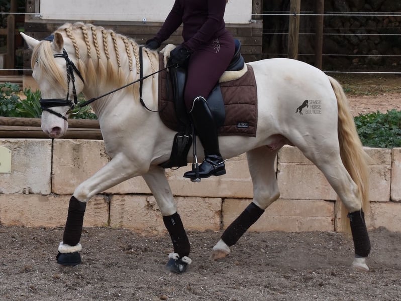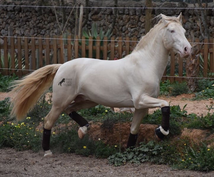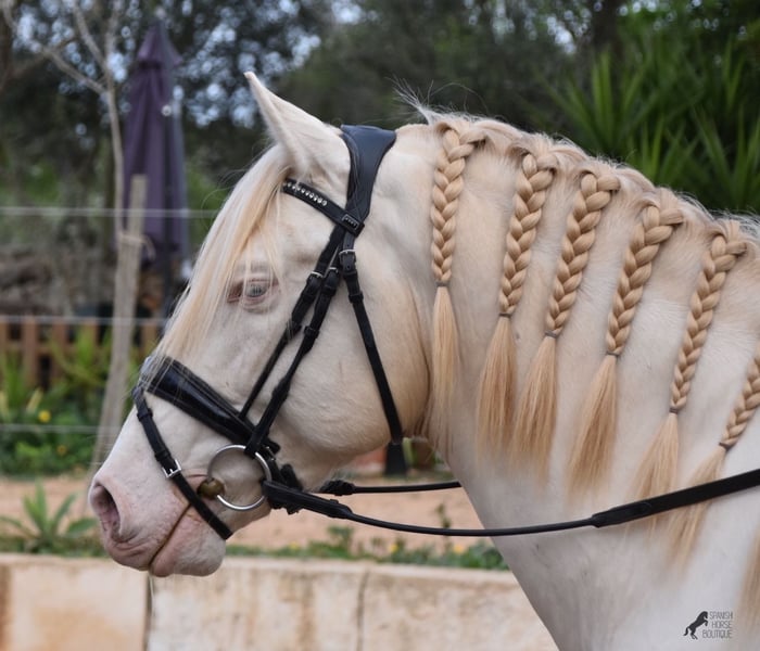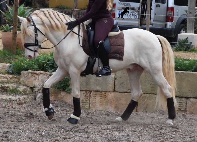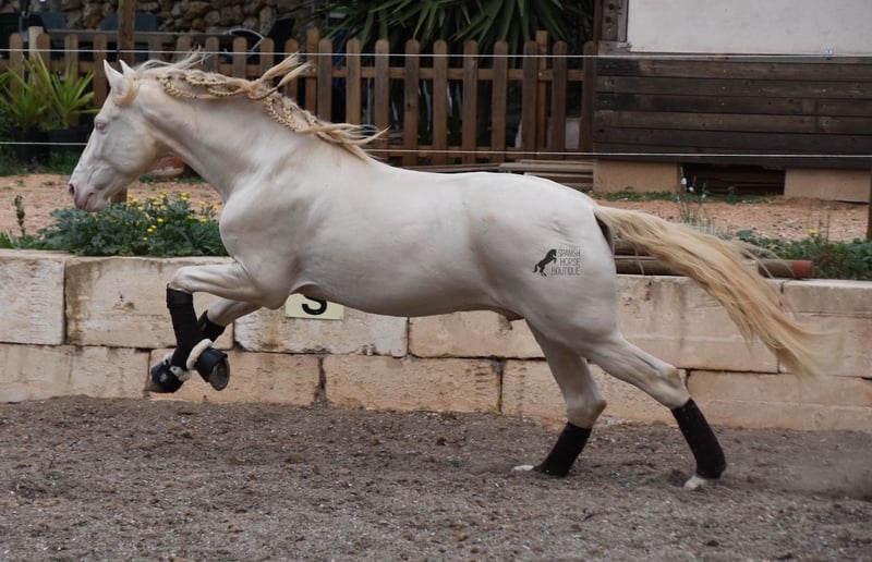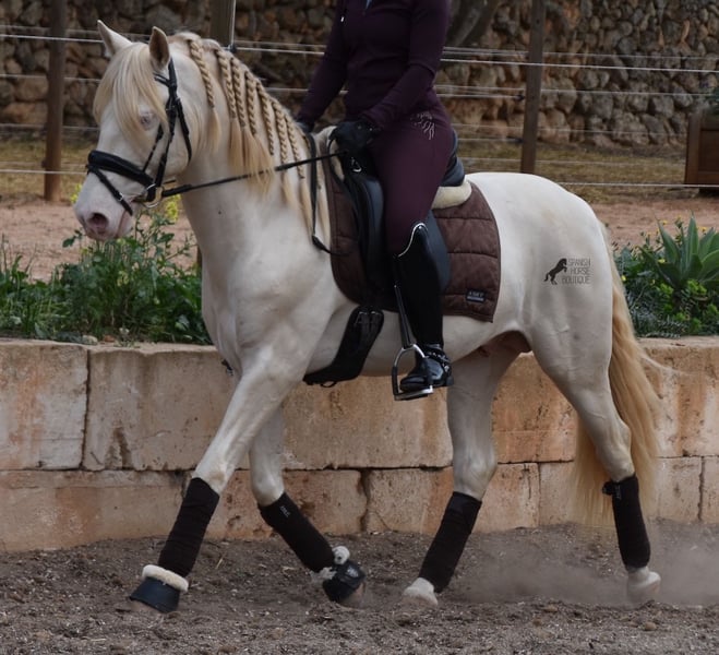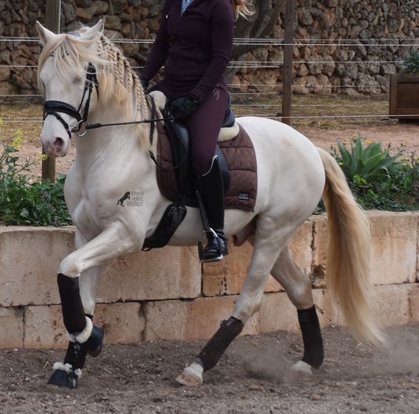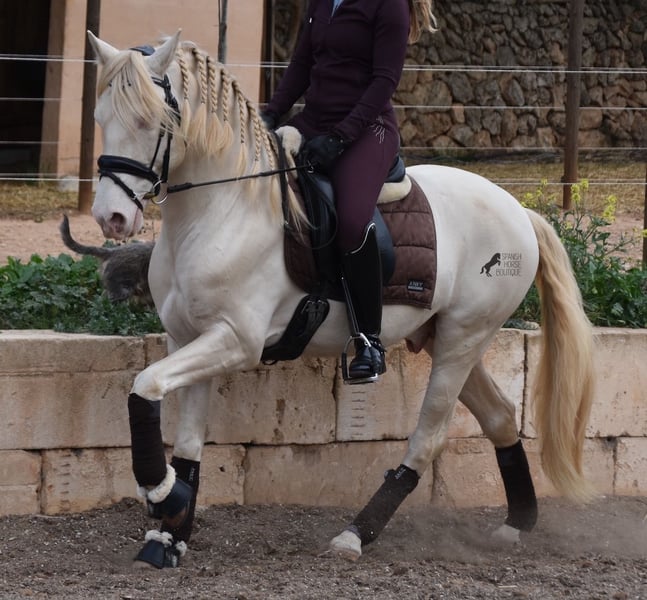 This Andalusian stallion, born in 02/2020, is an absolute sweetheart! Since weaning, he has grown up with his owner under the best care and enjoys a wonderful life in his large paddock, with horse buddies around him and lots of dogs to keep him company. The owner is very keen on dressage and he has the talent and movement for it. Unfortunately, at 148cm, he is a little short to compete properly. We are therefore looking for a good home for this darling. He already has competition experience and behaves really well for a young stallion, even outside his usual environment. At home he is absolutely cool and not at all stubborn, although there is of course the option of castration on site. Under saddle, he has a correct, age-appropriate basis on a water snaffle and is not only suitable for dressage, but also for working equitation or western riding, as he is short and very agile. His strong back is particularly great for a young horse, which reflects the correct training. He also has beautifully clear legs, which I captured on video ;) The seller preferred to wrap up her darling for the free run :) An absolute gentleman and a horse of the heart, with a big heart, in a small format. Price according to the quality. He is currently in Mallorca! Videos available on request. I am happy to organize an AKU, castration, riding, transport or even your trip, should you come to see him in person. Details can be found on my website or in conversation. Saludos from Spain