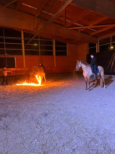 Absoluut droompaard: een Andalusiër in een prachtige kleur, hij lijkt meer op een Isabellafuchs. Zijn aanhankelijke karakter weet iedereen te charmeren. Hij is goed gereden in de dressuur, eenvoudige galopwissels en begint met zijgangen. Ook het rijden met een halsring hebben we al gestart. Hij kent het terrein zowel alleen als met anderen en toont zich tot nu toe nerveussterk, ook in het verkeer. In het trainingstraject voor rust en kalmte was hij een echte topper en was hij nergens bang voor. Hij beheerst diverse circustrucs zoals piaffe, liggen, compliment, zitten, nee zeggen en lachen. We zijn begonnen met apporteren. Favoriete truc: kusjes geven. Hij heeft ook al op shows gestaan en heeft eerste ervaringen met vuur opgedaan. Hij is tot nu toe nog nooit ziek geweest. Desalniettemin wordt hij niet verkocht aan beginners! Hij wordt alleen vanwege gezondheidsredenen door mij in betrouwbare handen overgedragen. Om recreatief rijden te ontmoedigen, rekenen wij bij bezichtiging/proefritten €35, deze wordt bij aankoop verrekend.