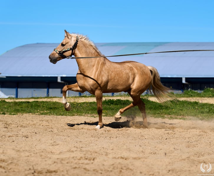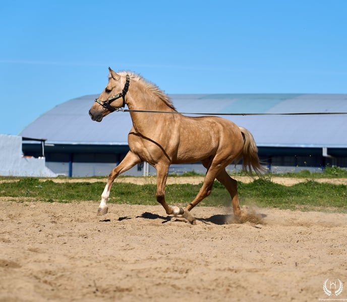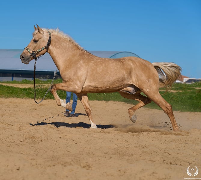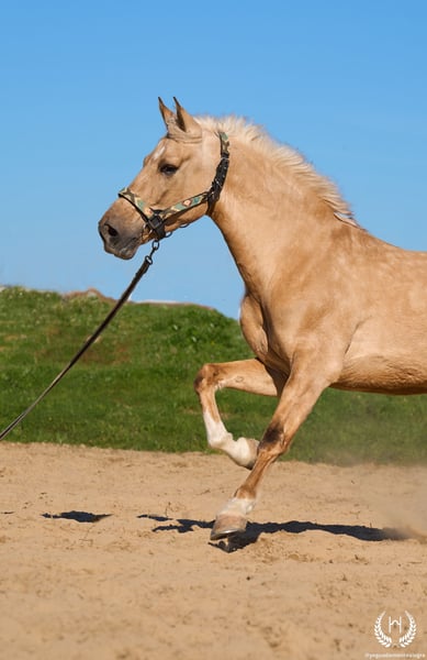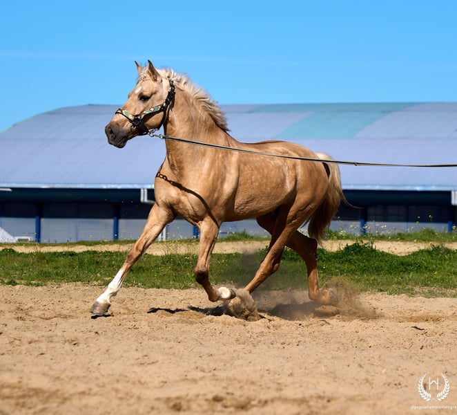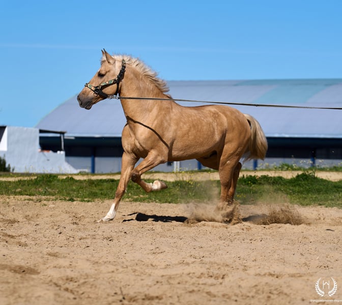 PRÍNCIPE MONTE ALEGRE ♦️ 2020 | 1,60 m | Palomino ✨ Koń, w którym zakochasz się od pierwszej chwili ❤️ 🐴 Príncipe to palomino wałach, z trzema białymi nogami i pręgą grzbietową, posiada europejski paszport. Klasyczny, wytrzymały i o imponującej prezencji. ✨ Idealny dla dzieci i początkujących jeźdźców Doskonały do jazdy w terenie i spokojnych przejażdżek. Bardzo dobrze ujeżdżony, doświadczony w pracy w terenie oraz na pokazach i wydarzeniach. 💫 Charakter: Szlachetny, uczciwy, pracowity i bardzo zrównoważony. Łagodny, łatwy i bezpieczny… „koń na całe życie.” 🎯 Wysoki poziom doma vaquera: Zmiany nogi w galopie, piruety proste i odwrotne. Pracuje na wędzidle, munsztuku oraz na dwóch i czterech wodzach. 🌿 Obszerne, elastyczne i płynne ruchy, kompaktowa i piękna budowa. Delikatny kontakt i doskonała jezdność. 🛡️ Niczego się nie boi: 100% pewny w terenie. 📅 Urodzony 19.03.2020 ❤️ Gwarancja bezpieczeństwa i przyjemności — idealny dla dzieci i osób bez doświadczenia. 📲 Napisz do nas na WhatsApp (+34 639522420), jeśli masz pytania lub potrzebujesz więcej informacji. Z przyjemnością pomożemy!