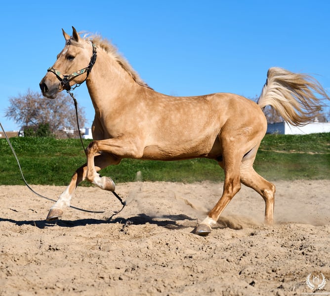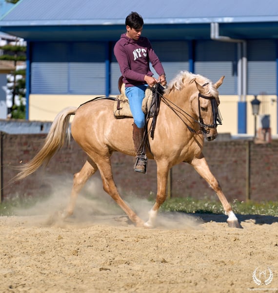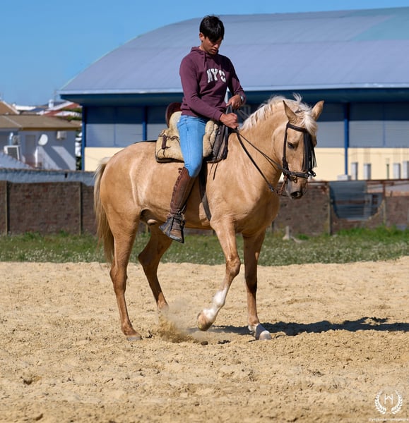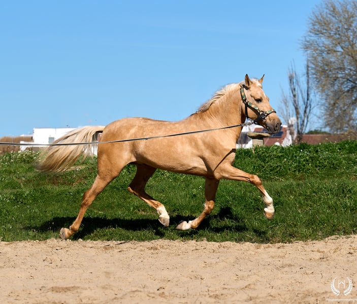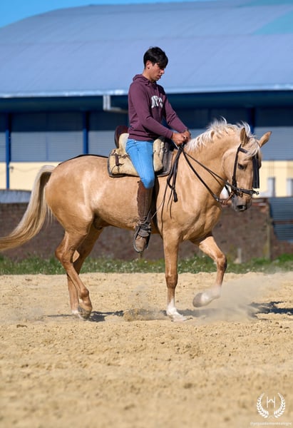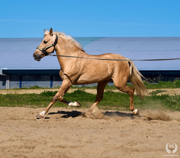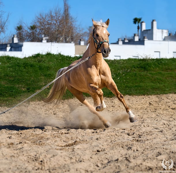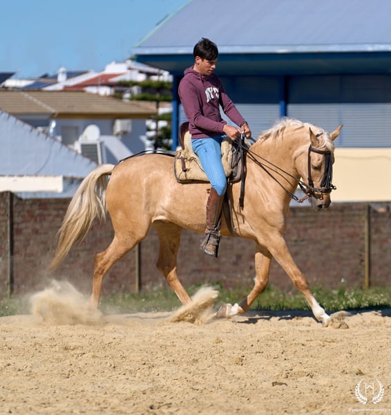 RÍNCIPE MONTE ALEGRE ♦️ 2020 | 1,60 m | Palomino ✨ Ein Pferd, das vom ersten Moment an begeistert ❤️ 🐴 Príncipe ist ein palominofarbener Wallach, dreifach weiß gezeichnet mit Aalstrich und EU-Pass. Klassisch, robust und mit beeindruckender Ausstrahlung. ✨ Ideal für Kinder und Anfänger Perfekt für Ausritte und entspanntes Reiten. Sehr gut ausgebildet, erfahren im Gelände sowie auf Messen und Veranstaltungen. 💫 Sein Charakter: Edel, ehrlich, arbeitswillig und mit hervorragendem Kopf. Sanft, unkompliziert und sehr sicher… ein echtes “Pferd fürs Leben.” 🎯 Hohes Niveau in Doma Vaquera: Galoppwechsel, direkte und inverse Pirouetten. Geht perfekt auf Trense, Kandare sowie mit zwei oder vier Zügeln. 🌿 Große, elastische und fließende Bewegungen, kompakter und schöner Körperbau. Weiches Maul und hervorragende Rittigkeit. 🛡️ Erschrickt vor nichts: 100% zuverlässig im Gelände. 📅 Geboren am 19.03.2020 ❤️ Garantie für Vertrauen, Sicherheit und Freude — ideal für Kinder und unerfahrene Reiter. 📲 Schreiben Sie uns per WhatsApp (+34 639522420) bei Fragen oder für weitere Informationen. Wir helfen Ihnen gerne weiter!