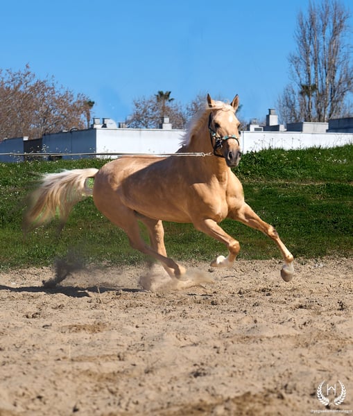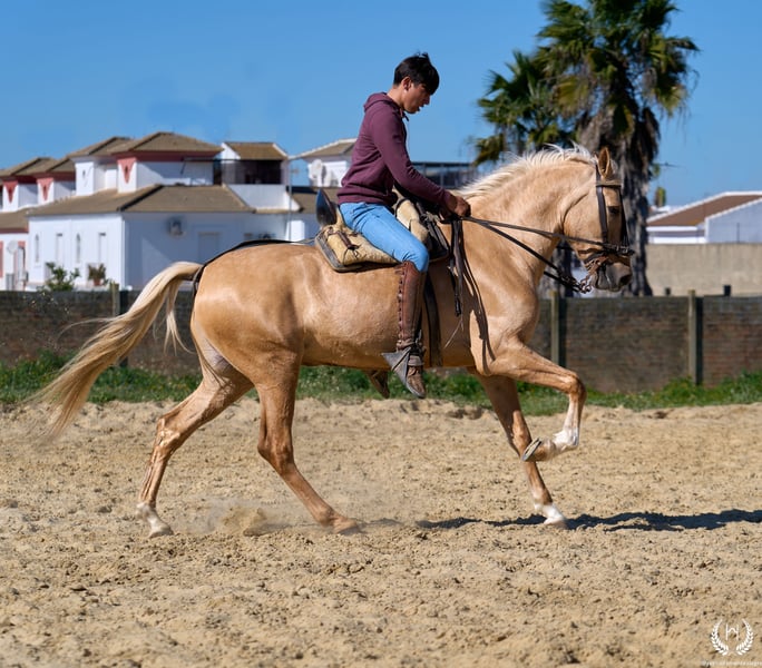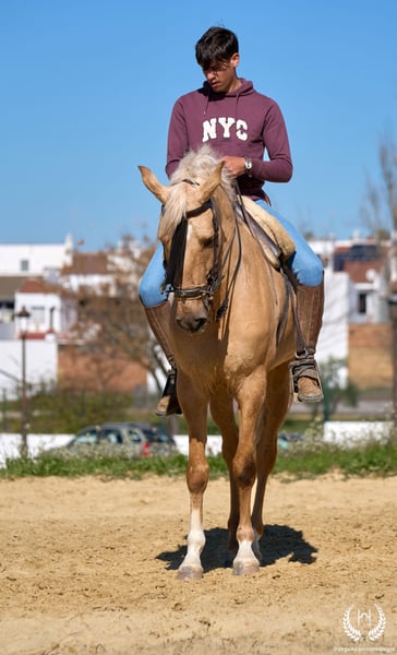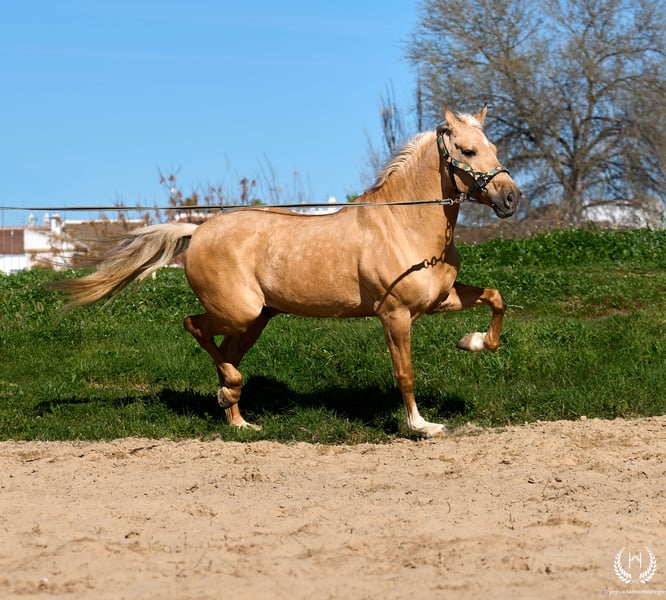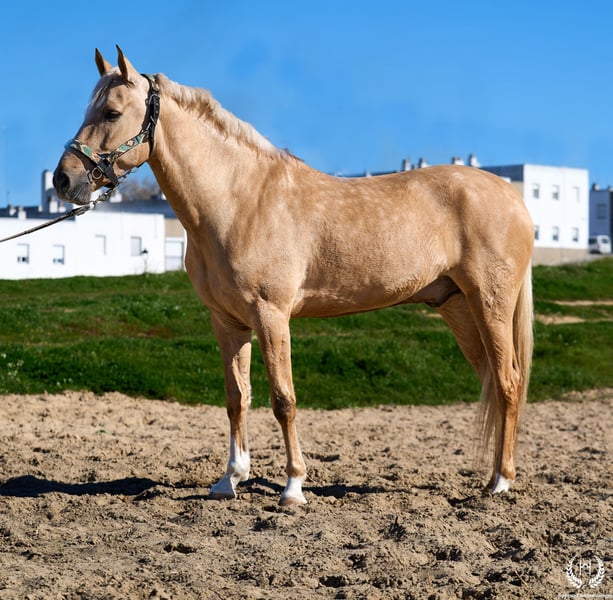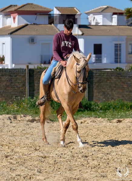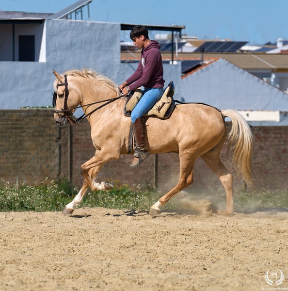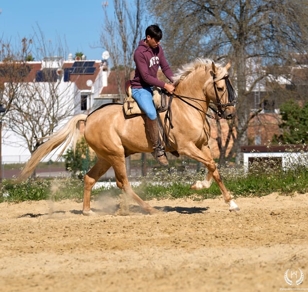PRÍNCIPE MONTE ALEGRE ♦️ 2020 | 1.60 m | Palomino ✨ A horse that wins your heart from the very first moment ❤️ 🐴 Príncipe is a palomino gelding, with three white socks and a dorsal stripe, and holds a European passport. Classic, rustic, and with a spectacular presence. ✨ Ideal for children and beginner riders Perfect for countryside riding, hacking, and enjoying without worries. A very well-trained horse, experienced in the field, fairs, and events. 💫 Known for his character: Noble, honest, hardworking, and with an exceptional mind. Gentle, easy, and very safe… what horse people call: “a horse for a lifetime.” 🎯 High level of doma vaquera: Flying lead changes, direct and reverse pirouettes. Works perfectly in snaffle, double bridle, and with two or four reins. 🌿 Wide, elastic, and fluid movements, with a compact and beautiful conformation. Soft mouth and extraordinary rideability. 🛡️ Not afraid of anything: 100% reliable in the field. 📅 Born on 19/03/2020 ❤️ Guaranteed nobility, safety, and enjoyment — a trustworthy horse ideal for children or inexperienced riders. 📲 Write to us on WhatsApp (+34 639522420) for any questions or further information. We will be happy to assist you!