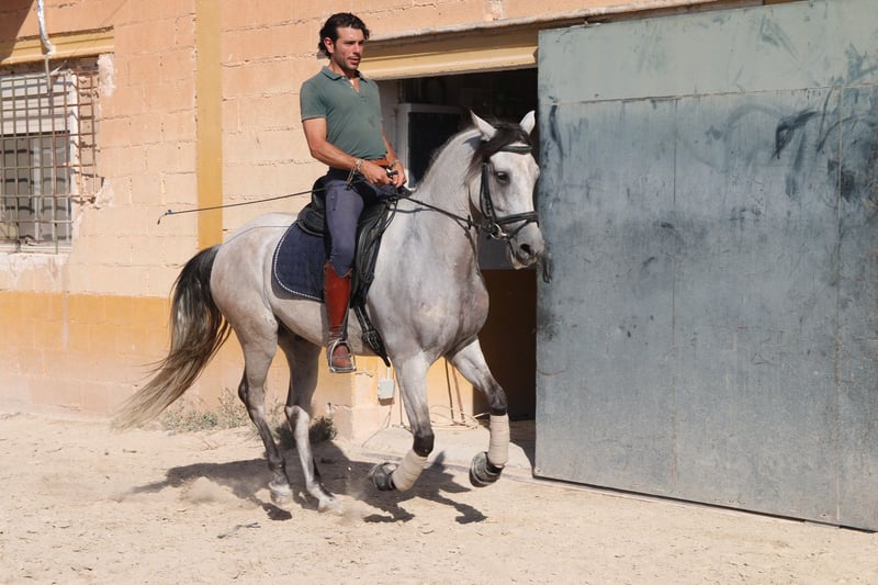 Chaleco is my charming Andalusian gelding, whom I purchased here three years ago. From the very first moment I met him, he enchanted me with his big heart and tireless curiosity. VIDEOS: Dressage: https://youtu.be/Lqp8J4i6DH4 Cross-country: https://youtu.be/0KeWjlmVudg Liberty/Free Dressage: https://youtu.be/A0-vZjVFF8M Chaleco’s natural curiosity and strong willingness to work are reflected in his dressage training. He is extremely eager to learn and always wants to be challenged. With his very sensitive mouth, he responds beautifully to light aids and has mastered the following exercises: Basic gaits (walk, trot, canter) Shoulder-in (walk, trot, canter) Shoulder-out (walk, trot, canter) Leg-yield (walk, trot, canter) Transitions walk > canter Transitions full halt > walk/trot/canter (and vice versa) Rein back Flying changes in canter Free jumping up to 1.20 m Jumping under saddle up to 1.00 m His movements are impressively elegant, he is very comfortable to sit, reacts to the finest aids, and combines strength with great motivation to work. Chaleco brings excellent quality that, with the right rider, makes him a very promising dressage horse. Currently, Chaleco has a 15-year-old part-lease rider who is just beginning to introduce him to jumping. He also hacks out alone, but only with experienced riders he feels safe with. Chaleco loves being around people and other horses and needs his daily share of cuddles. Especially in liberty dressage he shows himself to be a true natural talent. He not only masters free circling at walk and trot, but also recall training and waiting. He can already perform some small circus tricks such as the bow, “saying no,” and “smiling” with ease. At the moment, we are working on teaching him the Spanish walk. It is with a heavy heart that I am looking for a new, loving home for this wonderful young gelding, ideally in Germany. You are warmly invited to meet Chaleco in person, and I will gladly assist you with everything related to purchase, transport, and settling him into your stable. If you have any questions or are interested, please don’t hesitate to contact me.