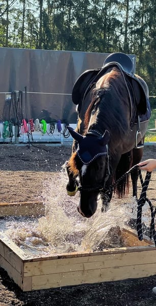 This clever 8-year-old gelding has been ridden in his leisure time and is currently being gradually brought back into work after an injury-related break. Checo loves liberty work and small tricks; he’ll do almost anything for treats. He is familiar with introductory double longeing and groundwork exercises (shoulder-in, hindquarters-in) and is also comfortable riding alone in the terrain. Checo has experience in open-stall management within a gelding group (preferably higher-ranking), and it would be wonderful if he could find a similar home again. He is well-behaved in handling but, typical of his breed, can sometimes be a bit lively, so he’s not suitable for absolute beginners. Checo has participated in extreme trail courses at his current stable and has also attended a working equitation clinic off-site. He measures approximately 15.1 hands and is an Eczema sufferer, but he does not require blankets or similar. Currently, he sports a mane band due to this (see last photo). He also has a small sarcoid on his side. His price is approximately 3.5 to 4 carrots 🥕🥕🥕, but we are open to negotiations. All tack and accessories can be purchased together if desired. If interested, I am happy to provide further information. We look forward to getting to know him! 😊