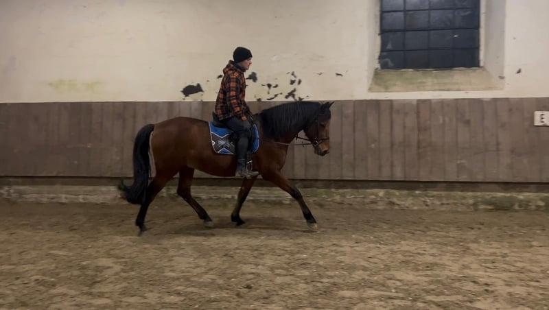 Zum Verkauf steht ein 8-jähriger Andalusier-Wallach in der Farbe braun mit einem Stockmaß von ca. 1,55 m. Er ist ein Pferd, das fest im Leben steht, dabei sehr menschenbezogen, freundlich und aufgeschlossen ist. Im täglichen Umgang zeigt er sich ehrlich, zugewandt und unerschrocken. Er möchte seinem Menschen gefallen und hat große Freude daran, sich zu bewegen und gemeinsam zu arbeiten. Unter dem Reiter überzeugt er durch sehr schöne, weiche und komfortable Gänge. Er ist motiviert, lernwillig und arbeitsfreudig, dabei sensibel und fein, weshalb er kein absolutes Anfängerpferd ist. Er wurde sowohl mit Gebiss als auch gebisslos geritten und zeigt sich dabei kooperativ und aufmerksam. Seine weitere Ausbildung kann individuell und vielseitig gestaltet werden. Der Wallach kennt sowohl Offenstallhaltung als auch Boxenhaltung mit Koppelgang. Im Herdenverband hat er bislang noch keine Erfahrung gesammelt. Er war bei seiner Besitzerin noch nie krank und eine AKU kann gerne vor Verkauf durchgeführt werden. Platz vor Preis ist ausdrücklich erwünscht. Ein tolles Pferd für Menschen, die einen bewegungsfreudigen, fein zu reitenden und menschenbezogenen Andalusier suchen, mit dem sie gemeinsam weiterwachsen und ihren eigenen Weg gehen möchten.