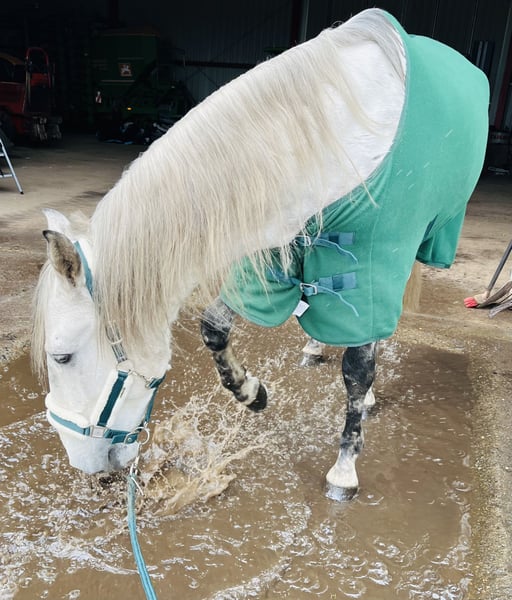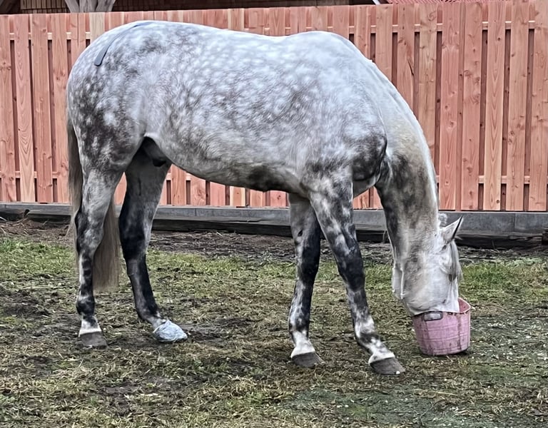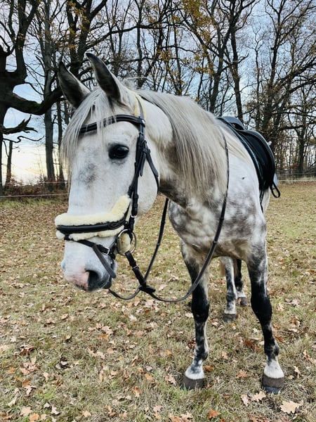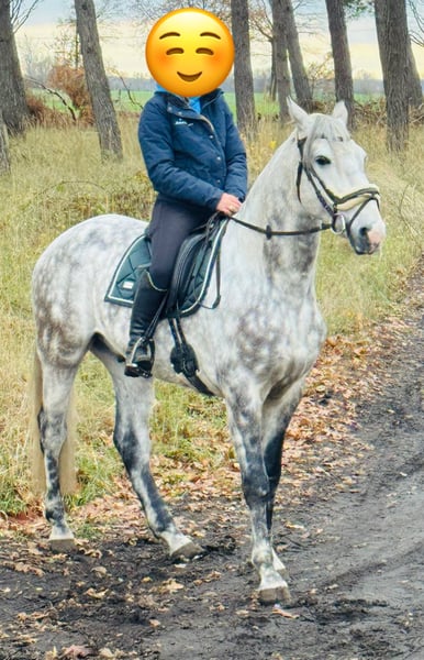 For sale is my dear Irish Sport Horse gelding, Dasch. He is approximately 16.2 hands tall and 8 years old. Unfortunately, I lack the time to give him the attention he deserves. Initially, Dasch can be a bit sensitive and reserved around unfamiliar people, but he quickly warms up with treats and would go through fire for someone he trusts. He has been ridden in all three basic gaits and is confident and brave both alone and in a group when hacking out. He is familiar with herd life but can only be kept with geldings, as he still finds mares very appealing (he was gelded late). Grooming and riding are no problem with mares. He is very playful with geldings. When mounting, he can be a bit nervous but is never nasty; once mounted, everything is fine—no bucking or rearing. Dasch is being offered at a very reasonable price because he occasionally tics in trot when ridden, due to an old tendon injury with scar tissue. He has no pain; the tissue is just uncomfortable for him, and after a short time, the tic in trot disappears, and he moves normally. All veterinary checks have been completed. He is sold purely as a leisure horse, ideally as a relaxed trail riding partner. Dasch loads calmly into the trailer and travels quietly. He has been regularly shod and introduced to the farrier without issues, and is currently full-shod. He is vaccinated and regularly dewormed.