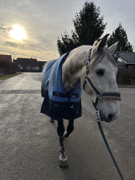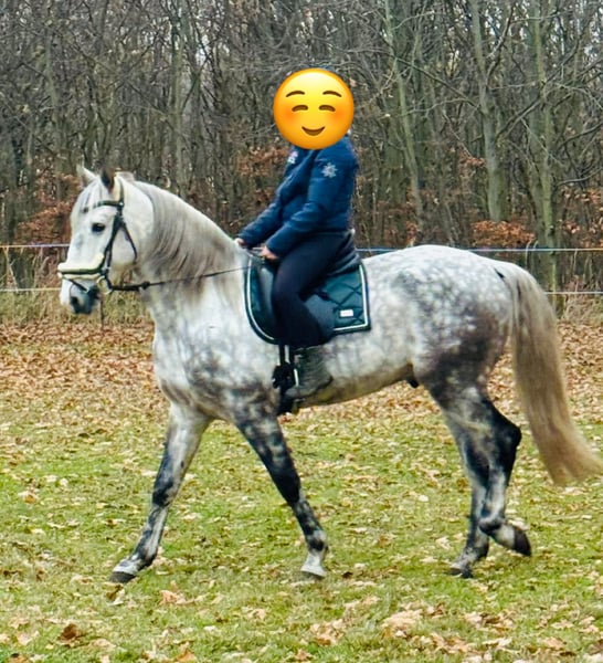 Abzugeben ist mein lieber Spanier Wallach Dasch , er ist ca 162 groß und 8 Jahre alt. Mir fehlt leider die nötige Zeit um allen gerecht zu werden. Dasch ist anfangs etwas sensibel und zurückhaltend bei fremden Menschen, mit Leckereien legt sich das aber ganz schnell und dann würde er für einen durchs Feuer gehen. Dasch ist in den drei Grundgangarten geritten und geht allein sowie in der Gruppe ins Gelände, dabei zeigt er sich zuverlässig und mutig. Er kennt Herden Haltung kann allerdings nur mit Wallachen stehen , da er Stuten noch toll findet( spät gelegt). Putzen ,reiten etc. Mit Stuten gar kein Problem. Er ist total verspielt mit Wallachen . Beim aufsteigen ist er etwas nervös aber nie böse dabei, sitzt man erstmal drauf ist alles in Ordnung, kein buckler , Steiger etc. Dasch wird weit unter Wert verkauft da er im Trab unter dem Reiter ab und an tickt weil er eine alte Sehnenverletzung hat wo sich Narbengewebe drauf gebildet hat. Dasch hat keine Schmerzen nur das Gewebe ist ihm unangenehm, nach einer Zeit hört das ticken im Trab auf und er läuft normal. Alles tierärztlich abgeklärt. Er wird als reines Freizeit Pferd abgegeben am liebsten wo er einfach ein Gelände Pferd sein darf. Dasch steigt artig in den Anhänger und fährt ruhig. Er ist natürlich immer dem Schmied vorgestellt und läuft mit Vollbeschlag. Dasch ist geimpft und regelmäßig entwurmt.