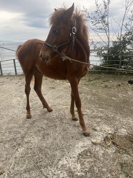 Filly born in April Arabian mare Arabian-Pottoka crossbred stallion sire