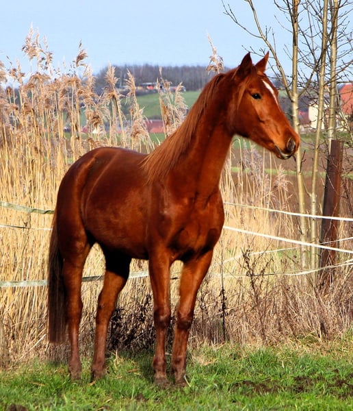 Kelta wurde 4 jährig eingeritten, da lernte sie unter anderem kleine Sprünge zu nehmen und sie war auch schon einige male im Gelände. Da sie über ein korrektes Fundament verfügt und tolle raumergreifende Gänge hat, wollten wir ein Fohlen aus ihr ziehen. Leider klappte dies nicht, weshalb wir sie jetzt doch schweren Herzens abgegeben. Sie hat einen sehr lieben Charakter, ist anständig im Umgang, schmust gerne, ist super verträglich in der Herde und dort eher rangniedrig. Kelta steht in 67440 Reutenbourg im Elsaß.