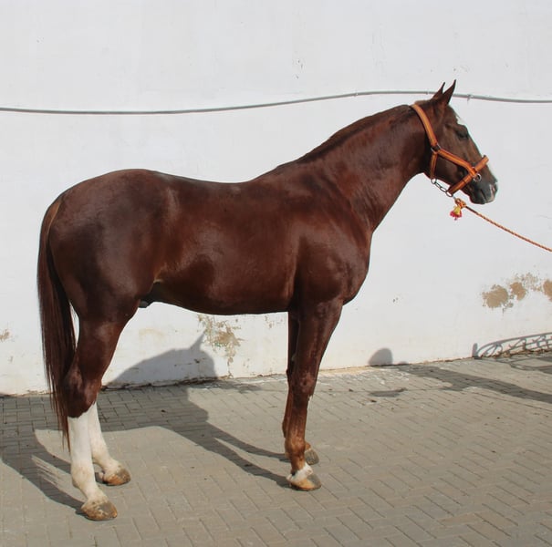 Tabasco est un magnifique Anglo-Arabe avec pedigree. Monté en Doma Vaquera, son père est champion d'Espagne en Doma Vaquera. Il peut également se montrer en dressage classique avec ses trois belles allures. Tabasco est un étalon très sociable, clair d'esprit, proche de l'humain, et également obéissant et attentif sous la selle. Il se déplace sans problème en terrain varié, seul ou en groupe. Un contrôle vétérinaire approfondi (AKU) peut être organisé. Le transport sera organisé à l'international. Vidéos sur demande.