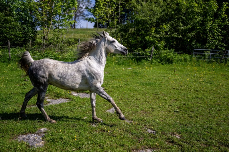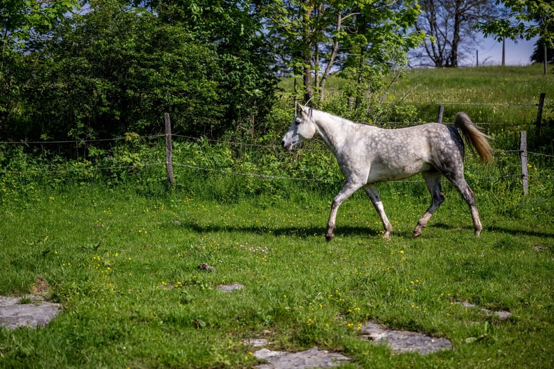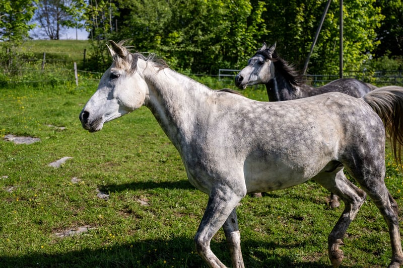 Malek ist in der Herde aufgewachsen und wurde bereits im Distanzsport eingesetzt. Dieser weisse Anglo-Araberwallach beweist viel Ausdauer. Er liebt es zu schmusen und macht alles mit. Malek ist geritten und wird momentan ein- bis zweimal pro Woche unter dem Sattel bewegt. Er wurde bereits der Osteopathin als auch der Zahnärztin vorgeführt. Im Jahr 2024 wurden sowohl Halswirbel als auch Vorderbeine geröntgt. Er weist keinerlei Mängel auf. Er benötigt eine Reiterin, welche ihn fördert, da er gerne unterwegs ein bisschen ein Träumer ist. Er arbeitet aber gerne und liebt lange Ausritte.