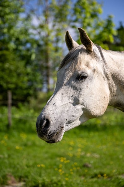 Malek has grown up in a herd and has already been used in endurance riding. This white Anglo-Arab gelding demonstrates a lot of stamina. He loves to cuddle and goes along with everything. Malek is ridden and is currently being worked under saddle one to two times a week. He has already been presented to both the osteopath and the dentist. In 2024, both his cervical vertebrae and front legs were X-rayed. He shows no deficiencies. He needs a rider who can encourage him, as he tends to be a bit of a dreamer when out and about. However, he enjoys working and loves long rides.