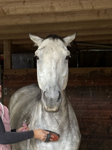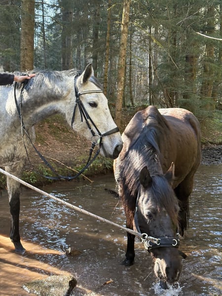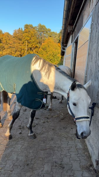 Verkaufsanzeige Standort 72202 Wallach „Pino“ 9 Jahre geboren 21.03.2017, ca. 1,70 m, Anglo-Araber, ein junges Pferd, das sicherlich nicht zu jedem Menschen passt! Schweren Herzens suchen wir für unseren Wallach Pino ein neues, pferdeerfahrenes Zuhause. Am besten in einem Offenstall, oder große Paddockbox mit Koppelgang. Pino ist ein 9-Jähriges ehemaliges Rennpferd mit einem Stockmaß von ca. 1,70 m. Er ist in jungen Jahren bereits Rennen in Frankreich gelaufen, was für seine psychische und physische Entwicklung nicht förderlich war. Nach dieser Zeit ging er durch mehrere Hände, wo er auch gewaltvolle Erfahrung erlebt hat. Pino ist seit fast 3 Jahren bei uns. In dieser Zeit konnten wir sehr viel mit ihm erarbeiten. Er bleibt beim putzen stehen, tritt nichtmehr und steigen ist auch ein Fremdwort. Wir sind ihn auch geritten, wobei er Spaß hatte und lernwillig mit dabei war. Allerdings wurde dies im letzten Jahr vernachlässigt, da ich schwanger geworden bin und ihn somit nicht geritten habe. Er hat einen kurzen Geduldsfaden, wenn dieser reist, beginnt er wild mit dem Kopf zu schlagen und wird unruhig. Man muss ihm dann klare Anweisungen geben und aus der Situation rausholen, dann beruhigt er sich schnell wieder. Im Gelände ist er aktuell nicht sicher!Besonders alleine wird er sehr unruhig und tänzelt viel, weshalb er vorerst unbedingt auf dem Reitplatz oder in der Halle weiter trainiert werden sollte und am Vertrauen gearbeitet werden muss. Daher braucht er unbedingt eine ruhige, konsequente und pferdeerfahrene Bezugsperson. Gesundheitsdaten: Leider hatte Pino im August 2024 eine Verletzung am linken Hinterbein und musste eine Nacht in der Klinik bleiben. Diese ist aber problemlos verheilt und wurde durch den Tierarzt und einer Physiotherapeutin regelmäßig kontrolliert. Er ist zum reiten und oder arbeiten ,,freigegeben“ worden. Eine OP-Versicherung ist vorhanden und übernahm einen Großteil der Rechnung. Diese kann bei Bedarf mitübernommen werden. Der Hufschmied kommt regelmäßig, da benimmt sich Pino vorbildlich. Geimpft und entwurmt wird auch regelmäßig. Was man postives über ihn sagen kann: Er ist sehr menschenbezogen. Er sucht den Kontakt und die Streicheleinheiten. Er kennt Hunde und Kinder die sich frei im Stall bewegen und lässt sich davon nicht stören. Er kennt zu dem Traktoren und Radlader. (Der Offenstall wird mit einem Radlader gemistet während die Pferde im Stall sind) Er geht lieb als Handpferd mit ins Gelände! Sei es an der Kutsche oder mit einem anderen Pferd. Diese müssen nur sicher und entspannt sein. Er hat zudem eine gute Abstammung in denen bei der Vaterlinie auch Namen wie Nureyev oder Nothern Dancer zu finden sind, klassische Vollblutlinie. In der Mutterlinie sind Namen wie Kapgarde zu lesen, welche stark auf Hindernissport und Springen prägen. Wichtig❗️Pino wird NUR in erfahrene Hände abgegeben. Erfahrung mit sensiblen und unruhigen Pferden ist Voraussetzung. Zudem muss man sich bewusst sein das Pino ein Anglo-Araber ist. Rassetypisch nimmt er schwer zu und hat viel Temperament! Ein passender Sattel und diverse Decken können bei Bedarf mit erworben werden. Bilder und Videos sind vorhanden und werden bei ernsthaftem Interesse gerne zugesendet. Wir wünschen uns für Pino ein ruhiges, verständnisvolles Zuhause, in dem er mit Geduld weiter gefördert wird. 5500€ VB inkl. Zubehör. Platz vor Preis!