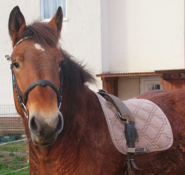 Ardennes mare with a heart of gold—friendly, laid-back, affectionate, well-built, and soon ready to start her training. Full papers. Travels well in the trailer and stands calmly alone. She is familiar with a turnout blanket, girth, dogs, and tractors. She stands nicely tied. Currently approximately 15.5 hands, quite stocky, with an expected final height of around 16.0 hands.