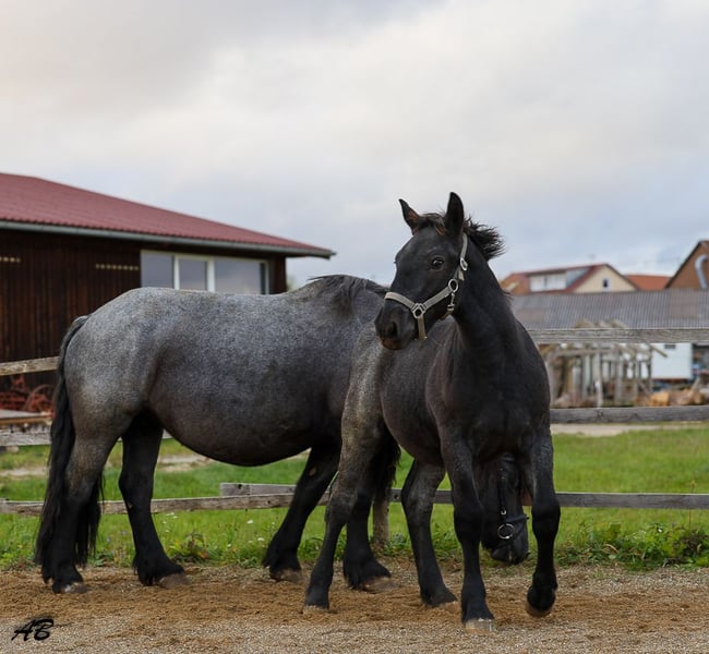 Matze, born on April 26, 2025, is a Palatinate-Ardenner colt with the highly sought-after blue roan (blue dun) coat color, available for sale. His sire is Mannheimer, and his dam is Belina by Eldorado. Matze is a friendly and calm colt, with an approximate height of 15.5 to 15.7 hands. We are looking for a place where he can grow up among other foals. He is familiar with the basics of the foal’s education and is ready for the next step in his development. Please contact us at 01776933995.