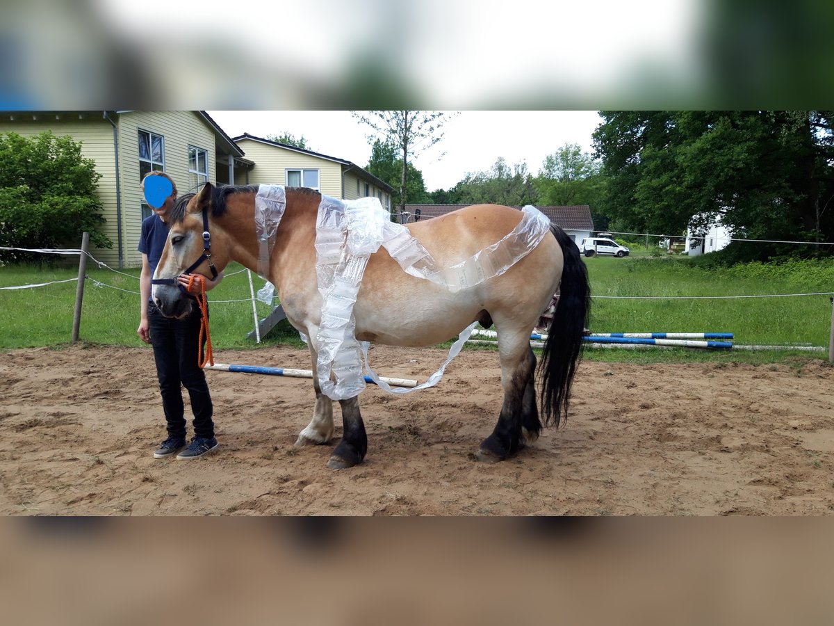 Jurand is an 11-year-old cold-blooded gelding bred in Poland, currently used in our behavioral and riding therapy programs. He is very social and approaches all people confidently. Within the herd, he holds a high ranking. Jurand is calm under pressure and eager to learn. He also picks up on things he doesn’t necessarily need to know (e.g., opening gate latches...). Due to his solid build, he makes an impressive impression. He has experience with many people and sometimes exploits "authority gaps" (e.g., stopping, eating, or turning towards the pasture). He requires an experienced horse person who can anticipate such antics and intervene accordingly. However, he also reliably stands still if an inexperienced rider is uncertain, waiting patiently until it’s safe to continue. Despite his strong stature, he can canter on both leads and has learned to respond to subtle aids. Jurand has developed a moderate summer eczema, but he has no other health issues.