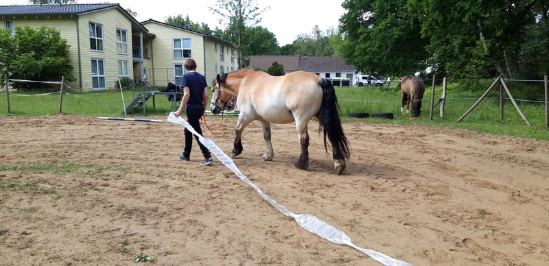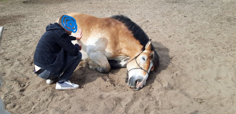 Jurand is an 11-year-old cold-blooded gelding bred in Poland, currently used in our behavioral and riding therapy programs. He is very sociable and approaches all people willingly. Within the herd, he holds a high rank. Jurand is calm under pressure and eager to learn. He is also quite clever and learns things that are not necessarily required of him (he can open gate latches, for example). Due to his sturdy appearance, he makes an impressive impression. He has experience with many people and sometimes takes advantage of "authority gaps" (such as stopping, eating, or turning towards the paddock). He requires an experienced horse person who can anticipate such behaviors and intervene accordingly. However, he also reliably stands still when ridden by an inexperienced rider and waits patiently until it’s time to move on. Despite his strong build, he can canter on both leads and has learned to respond to subtle aids. He has developed a moderate case of summer eczema, but no other health issues are present.