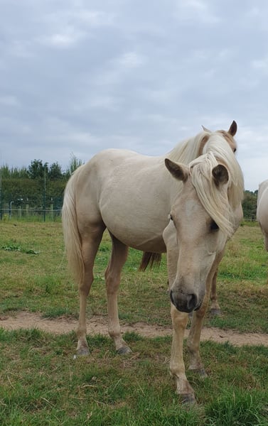 Notre magnifique pouliche Azteca d’un an, issue de notre propre élevage, recherche une famille 5 étoiles. Chexy séduit non seulement par sa beauté, mais aussi par son tempérament exceptionnellement équilibré et calme. Elle est très courageuse, curieuse et particulièrement intéressée par l’humain. De plus, elle est totalement sans peur et d’un tempérament doux dans ses interactions. Sa curiosité et sa nature douce en font une partenaire idéale pour toutes les disciplines de loisir, qu’il s’agisse de dressage, de western ou de Working Equitation. Elle a le potentiel pour briller dans de nombreux domaines. Chexy est habituée à évoluer en troupeau, parfaitement socialisée et minéralisée. Elle n’a jamais été en box et ne sera pas placée en box. Elle est bien entendu ferrée et débourrée, connaît déjà les bases du travail à la longe. Nous souhaitons pour elle un propriétaire qui prendra le temps de s’investir avec elle et d’exploiter pleinement son potentiel. Elle possède un pedigree de l’AAHIA et détient un passeport européen. Caractéristiques principales : Race : Azteca Sexe : Pouliche (jument) Âge : 1 an Couleur : Palomino Caractère : Calme, équilibrée, curieuse, sans peur Taille au garrot : env. 1,58 m Les deux dernières photos montrent ses parents. Mère : PRE, Père : QH avec du sang ancien (Doc Chex)