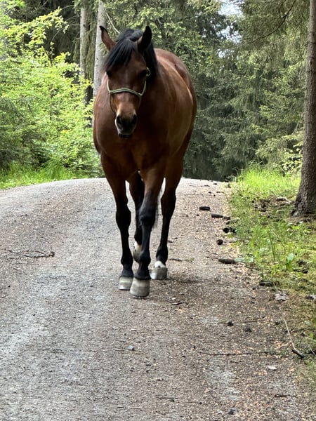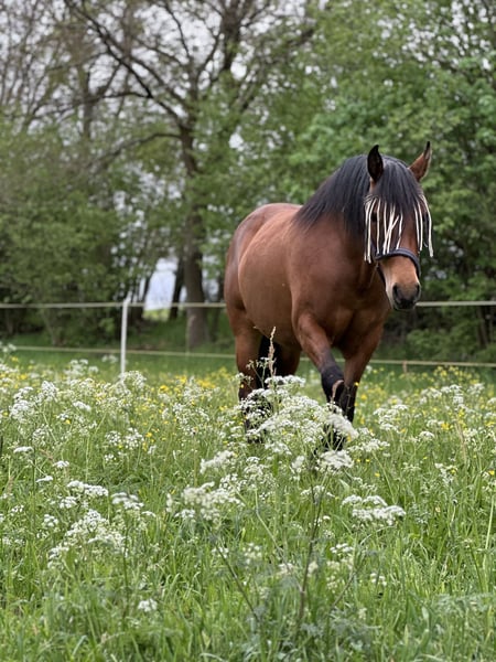 Suna ist die schmeichelndste Stute die ich kenne. Mit ihrem Charme und ihren lieben Augen zieht sich viele in ihren Bann. Suna ist 3 Jahre alt und bei uns geschlüpft. Es war ein atemberaubendes Erlebnis und ich schreibe diese Anzeige auch nicht gern. Wir lieben sie hier wirklich sehr aber wir können ihr zeitlich nicht gerecht werden. Sie braucht Kontakt zu jüngeren Pferden aber vor allem braucht sie Arbeit/ Beschäftigung im Sinne von regelmäßiger Bodenarbeit. Sie kennt schon etwas Horseman. Das Zirkeln im Roundpen, Weichen und Planenspiele mag sie. Hängertraining kennt sie auch etwas aber noch ungenügend. Wir kommen zu selten dazu. Suna ist noch roh, hätte jedoch einen Platz ab März zum Beritt bei Nina Gassner im savvy center. Was Suna noch braucht ist abgewogenes Futter, dies sollte in engmaschigen Netzen, in sogenannten Slowfeeder Netzen gereicht werden. Sie ist eben zur Hälfte ein PRE und kommt mit unseren fetten Wiesen und dem recht süß schmeckenden Heu gesundheitlich nicht zurecht. Wir hatten aus Nichtwissen aus diesem Grund extreme Probleme mit ihrer Gesundheit was wir jedoch durch Konsequenz gerade biegen konnten, eine Fressbremse ist aus diesem Grund auf der Wiese unerlässlich. Weiteres gern falls echtes Interesse besteht.