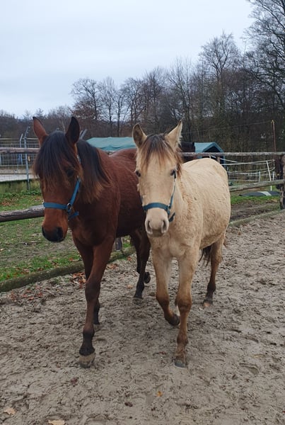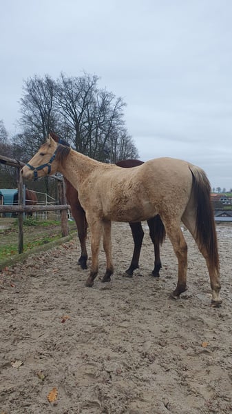 One-year-old Azteca stallion in the special color Amber Champagne Dun for sale. This one-year-old Azteca stallion is a true eye-catcher, not only because of his pedigree (Lusitano x Paint Horse) but also due to his rare special color Amber Champagne Dun. His golden shimmering coat makes him a unique specimen. But he is more than just beautiful: he is an alert, friendly, and curious young horse who impresses with his excellent basic gaits and a lovely natural balance. These qualities make him an ideal candidate for Working Equitation, as well as for Western riding and as a versatile leisure partner. He is healthy, well-socialized, and ready to be developed by you. Key data: Breed: Azteca (Lusitano x American Paint Horse) Age: 1 year Gender: Stallion Color: Amber Champagne Dun Potential: Working Equitation, Western, leisure Expected height: approx. 1.57 m He could also remain for further upbringing and will only be sold to a suitable home.