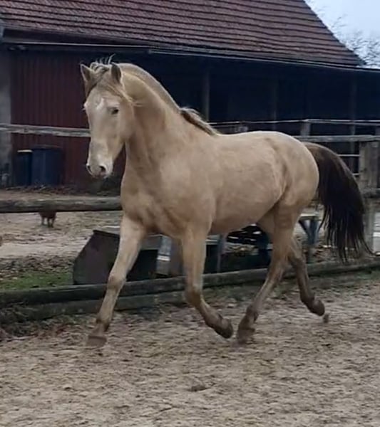 "SOL shining Star" Azteca (PRE x Paint Horse) von 2022. Sein Vater ist der berühmte Hengst SOL PM von Paco Marti. Außergewöhnliche Farbe in Amber Champagne/ Pearl. AaEeChPRL. Endmaß ca 1,62 m sehr kräftiges, korrektes Fundament mit einem Traumcharakter. SOL hat Papiere von der AAHIA und ist dort als Vererber registriert. 2025 sind seine ersten drei, mehr als gelungenen, Fohlen von ihm geboren. Er hat unsere Erwartungen in punkto Exterieur und Farbe mehr als übertroffen. Quarter Horse, Paint Horse, PRE und Lusitanos bekommen Papiere von der AAHIA. Steht erstmalig für 2026 im Natursprung zur Verfügung. Frühbucherrabatt bei Buchung bis Ende Januar 26 600 €