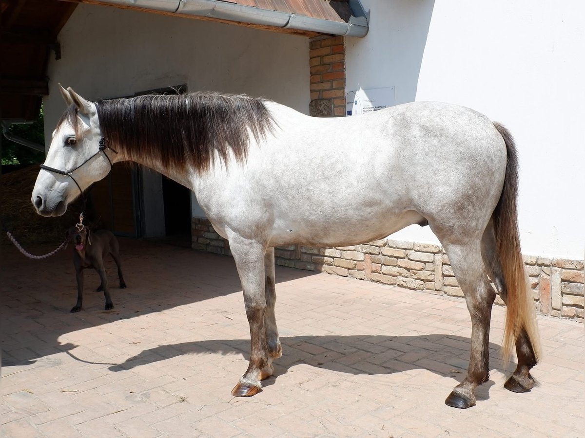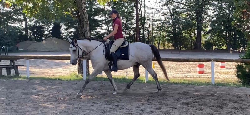 Freddie is a very kind and friendly horse. He came to me directly from his breeder and was started under saddle by me. His basic gaits are very light and elastic. Before being ridden, he received groundwork training based on the Parelli method, and later continued under saddle with classical French dressage. He is currently at a basic riding level – walks, trots, canters, and has already started working on lateral movements. Due to his breed, he is highly intelligent and learns quickly. With me, he has also been introduced to some Working Equitation obstacles. He would make a perfect partner for a dedicated hobby rider or someone who values groundwork and classical training methods. He currently lives in an open herd, but spent the winter evenings in a box.