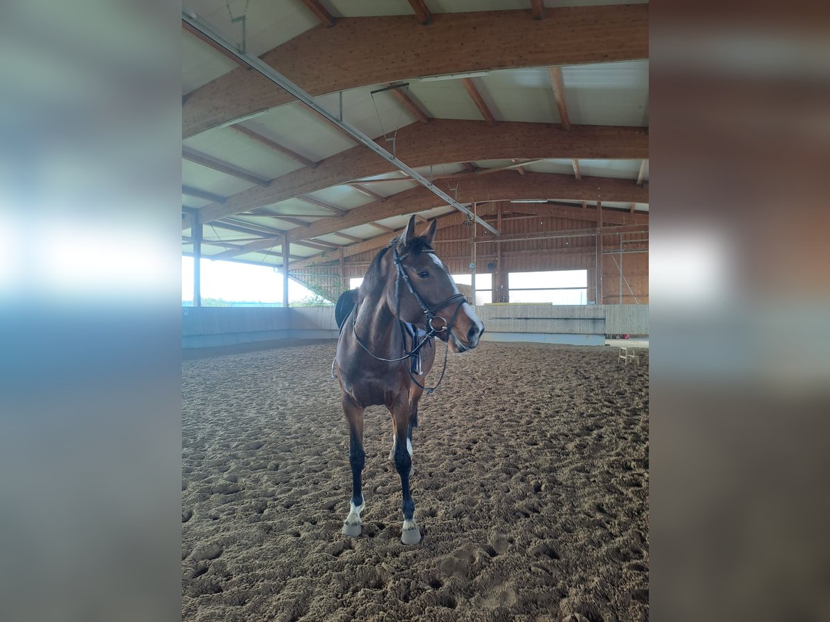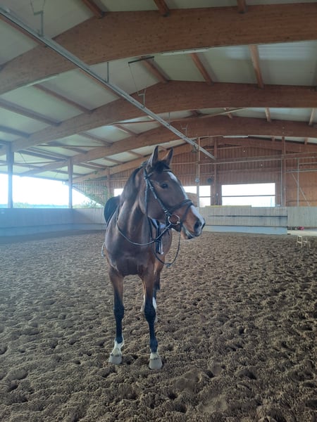 5-jährige Stute mit Potenzial für den Springsport Zum Verkauf steht eine 5-jährige, talentierte Stute. Sie wurde bisher im Springen noch nicht intensiv gefördert, zeigt jedoch einen sehr schönen, vorsichtigen Sprung und bringt alles mit, was man sich für die weitere Ausbildung wünscht. Die Stute hat große Freude an der Arbeit, insbesondere am Springen. Sie ist dabei stets motiviert und zeigt sich unter dem Sattel sehr angenehm zu reiten und fein in der Anlehnung. Sie geht außerdem gerne Ausreiten oder spazieren. Sie wird schweren Herzens abgegeben, da ihre Besitzerin ins Ausland geht und leider keine Möglichkeit besteht sie mitzunehmen. Daher wird ein passendes, förderndes Zuhause gesucht, in dem sie weiter ausgebildet und wertgeschätzt wird. Bei ernsthaftem Interesse freuen wir uns über eine Nachricht.