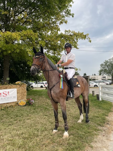 Cayman We are offering a show jumping horse with great potential and experience, suitable also as a "teacher" for less experienced riders. This impressive Baden-Württembergian gelding was born in 2014. His striking dappled dark chestnut coat captivates with his appearance and presence. He measures 176 cm at the withers, making him a tall and suitable partner for larger riders. He has a strong aptitude for jumping and has already achieved numerous placements in show jumping competitions. His experience and rideability make him a versatile jumper that can impress riders of various levels. The gelding is well-trained, reliable in handling, and always displays a friendly and cooperative attitude. He is suitable for ambitious recreational riders as well as for competitive show jumping. He also enjoys hacking and dressage work, bringing joy every day. He is being sold at a significantly reduced price due to showing signs of ataxia in his stable. This is only noticeable when he is in the box or on a very small stall during transport. There are no signs of ataxia when riding or jumping, and he feels perfectly sound. If you are interested or have further questions, I am happy to arrange a viewing and trial rides. Please contact me to learn more about this wonderful horse!
