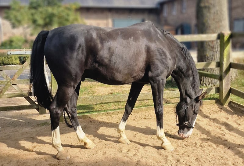 Carl-Fredo, affectionately called "Calli," is a beautiful 16.1 hh black gelding of Württemberger origin. Born on June 26, 2010. Calli is a dream to ride, responds very delicately to aids, and moves forward willingly. He used to compete in show jumping and dressage, but is now exclusively used for leisure riding and is intended to be sold as a pure recreational horse. He is very sensitive in the mouth and along his back, so he is not suitable for beginners or heavy riders. I enjoy taking him out on rides, both alone and in groups, and he is the perfect reflection of his rider during these outings. If the rider is confident and relaxed, Calli is the same. He needs a loving yet consistent handler who can build a trusting relationship with him. He is seen by the veterinarian annually, receives all vaccinations, is treated chiropractically, and is regularly shod. Shoes remain very important for him! At night, he is kept in a spacious outdoor box, and during the day, he is turned out on pasture. He is herd-friendly, but despite his impressive appearance, he tends to be lower in the pecking order and appreciates having his own retreat and cozy box for the night. Daily turnout from morning to evening is an absolute must, and in summer, he is happy to be turned out full-time. He can be loaded with a bit of persuasion. Calli is a sensitive and people-oriented horse. It is absolutely essential for me to find him a caring, consistent owner who values proper horse care and has no ambitions for competition, someone who will take the time to understand and bond with him. My dream is a private stable with a small herd. A loving home is my top priority. If you are looking for a loyal leisure partner and family member, and do not see your horse as a mere sport tool, I would be happy to discuss further details during a personal meeting.