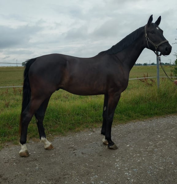 For Sale: Baden-Württembergian Gelding – An impressive black stallion with great potential! This elegant gelding was born in 2022 and impresses with his noble appearance and impressive size. Standing at 174 cm (approximately 16.1 hh), he offers a commanding presence and is ideal for ambitious riders seeking a reliable and expressive horse. The black stallion features a strong build, a friendly nature, and a pleasant temperament. He is well-socialized, eager to learn, and very cooperative both in handling and training. Although he has only recently been backed, he is not suitable for beginners. This horse is perfect for riders who value quality, character, and good bloodlines. It offers versatile use, whether in leisure riding or competition. He is being sold well below value due to a pronounced overbite since foal, which does not affect his suitability as a riding horse.