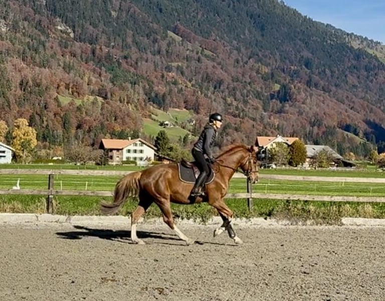 Ce hongre alezan de 4 ans, issu du saut d'obstacles, séduit par sa nature amicale et son caractère docile. Il a été monté avec douceur et se montre toujours volontaire à apprendre, facile à vivre et équilibré. Un très beau jeune cheval pour les cavaliers qui aiment continuer à former un jeune cheval. 💫 https://www.rossel-sportpferde.ch/verkaufspferde/
