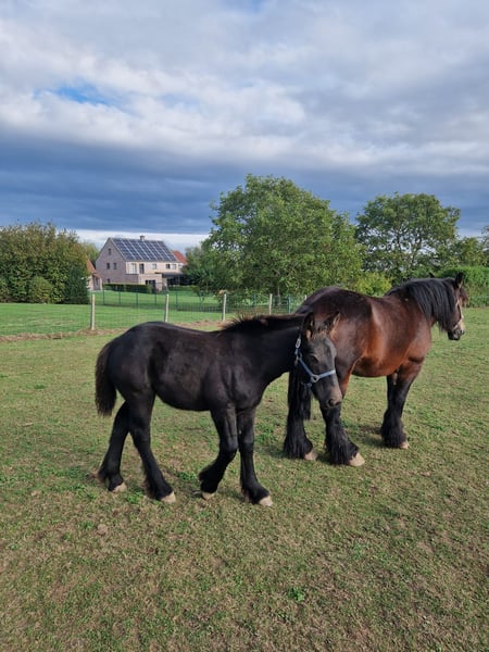 Poulain de mâle de trait brabançon. Entièrement noir. Âgé de 5 mois. Très bien conformé.