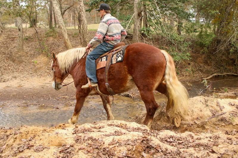 ONLINE AUCTION Place your bids at www.PlatinumEquineAuction.com Starting Bid $3500 Auction ends January 4th, 2025 Need a new saddle? Check out White Rock Saddles on our website or Facebook Meet Bella a stunning Belgian mare with a heart of gold. At 10 years old and standing 16.2 hands tall, Bella is the perfect combination of size and grace. She has a calm and willing temperament, making her ideal for riders of all levels. Bella has extensive trail experience and is confident in various terrains. Whether you're navigating wooded paths, crossing streams, or enjoying open fields, Bella will take care of you. She is always eager to please and loves spending time people. Bella is also broke to drive both single and double and has been used as a work horse as well! Don't miss the opportunity to make Bella your own. Located in Rusk TX, nationwide shipping is available! Please reach out to Rachel with TR Livestock 605-370-4644 if you have any questions! ONLINE AUCTION Place your bids at www.PlatinumEquineAuction.com Starting Bid $3500 Auction ends January 4th, 2025 Need a new saddle? Check out White Rock Saddles on our website or Facebook