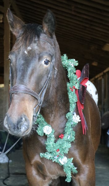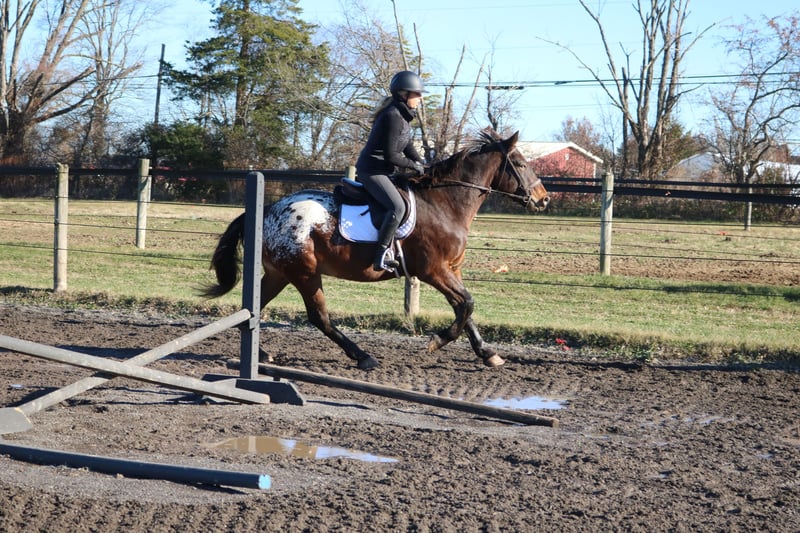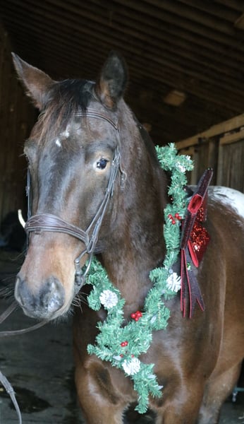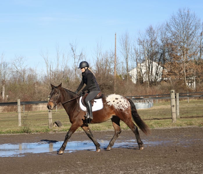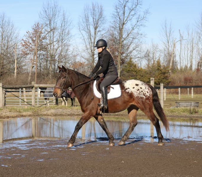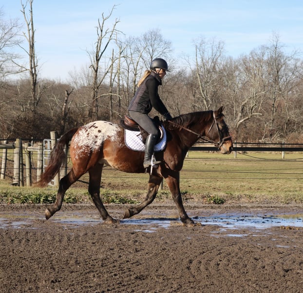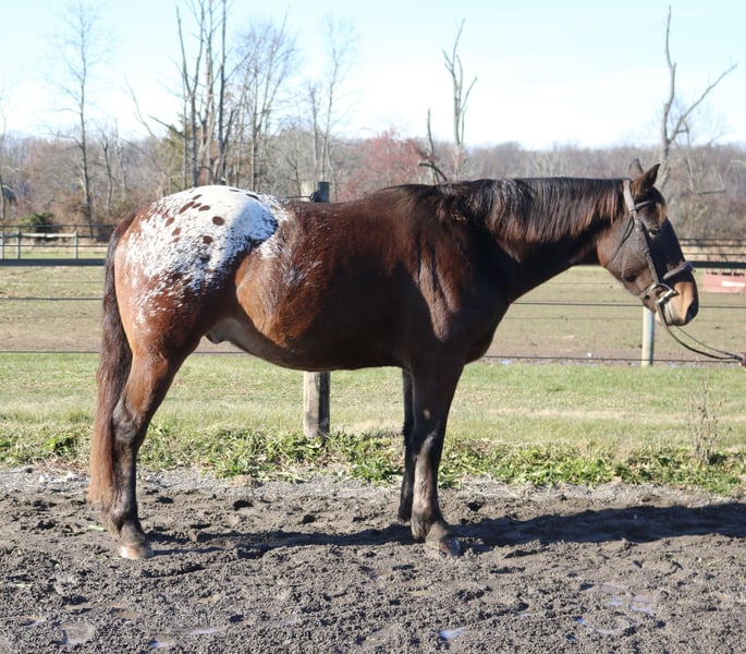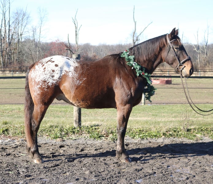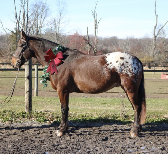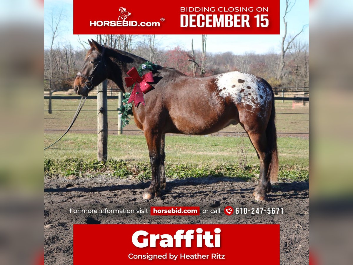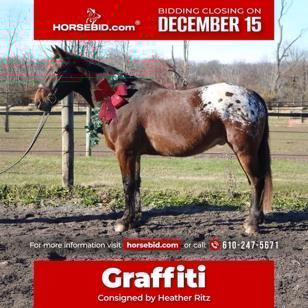 🎄𝐓𝐇𝐄 𝑯𝒐𝒍𝒊𝒅𝒂𝒚 𝐂𝐋𝐀𝐒𝐒𝐈𝐂🎄 Happening now thru MONDAY | DECEMBER 15th - Available EXCLUSIVELY on HorseBid's website! For more details and to register visit: www.Horsebid.com CONSIGNOR CONTACT: Heather Ritz 610-247-5671 LOCATION: Perkasie, PA BREED: Belgian X Appaloosa REGISTERED: No COLOR: Bay HEIGHT: 15.3 AGE: 4 GENDER: Gelding Graffiti 4 yo Belgian x Appaloosa Gelding. Graffiti has an exceptional temperament for a 4 year old and behaves like a 10 year old. Barefoot and sound with no known injuries to maintenance. He is up to date. He is turned out in a mixed herd and gets along with everyone. He doesn’t crib, bite, kick, or weave. On the ground, Graffiti is a big puppy dog. He loves people and has a great personality. He is easy to catch, stands tied, clips, loads, and bathes. He is good for the vet/farrier and loads/hauls well. He is a barn favorite and everyone who meets him falls in love with him. In the arena, Graffiti rides both english and western. He stands like a rock to be mounted from the ground or by a block. He walk trot canters and picks up both leads. He is jumping small courses with room for more. He has also been schooled over cross country fences. Graffiti is used to tarps, flags, and the oversized jolly ball. Out on the trails, Graffiti is well seasoned. He will haul out alone or in a group. He crosses water, bridges, and traffic. Graffiti has been hauled off property and is always the same. He loves to swim and is sure footed on rough terrain. Graffiti would be an amazing family horse with his calm kind demeanor. He can tote a husband around on the trails one day and go foxhunting or showing the next.