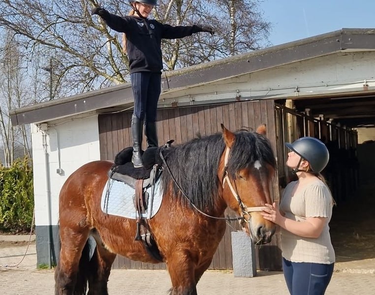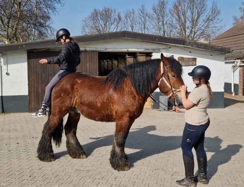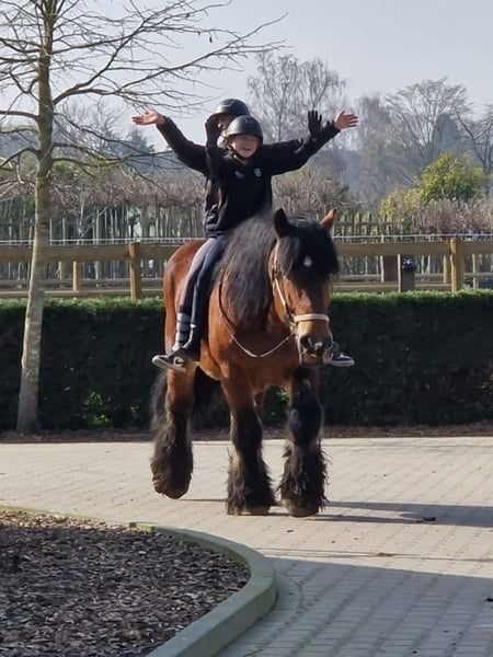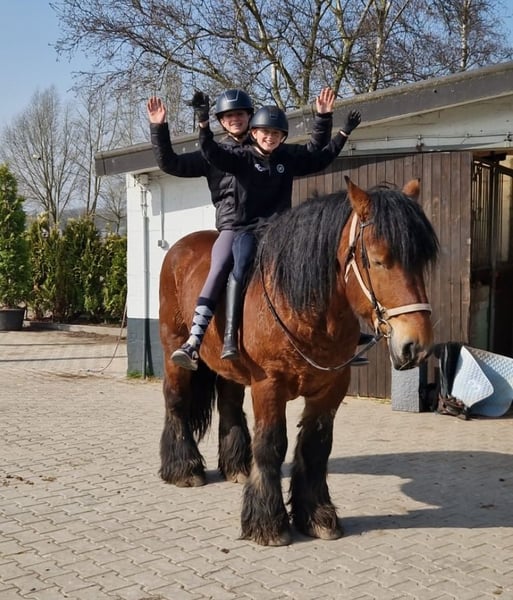 A big heart and a loving past define our seven-year-old Billy. He is truly a soul horse. He spent his years with older people in a large garden, where he was lovingly cuddled every day. This boundless trust he now brings into his new home. He is an absolutely honest gelding who patiently carries children and is simply adorable in his manners. Imagine him standing in the garden, a grandchild lying on his back, grazing and enjoying the world. That was his life. Although Billy has had limited traditional riding experience in the past, he learns incredibly quickly and has already shown his cool side on our joint trail rides. He is definitely not a stubborn cob. Rather, a gentle friend who is now ready to explore the world with his new owner. With a little time invested in his further training, Billy will be the most loyal partner for relaxed rides you could wish for. A true lifelong friend who just wants to please. Billy has recently been shod and gets along very well with other horses. If you're interested, we would be very happy to hear from you! 01703718888