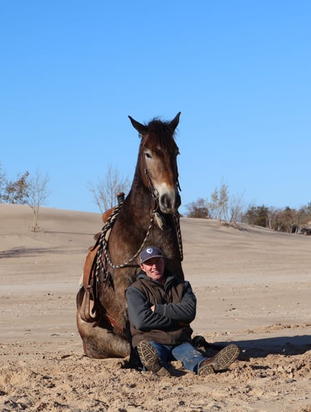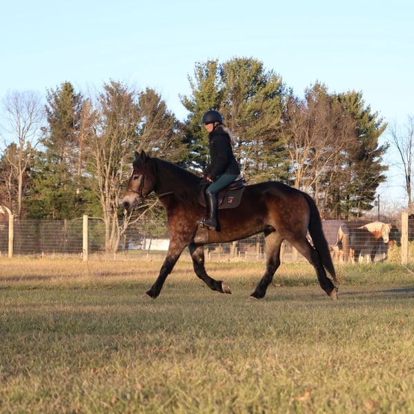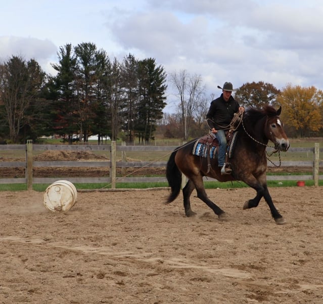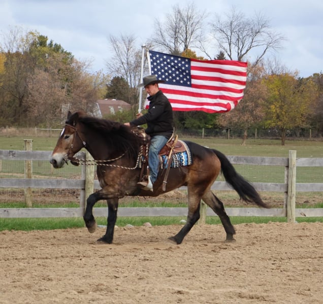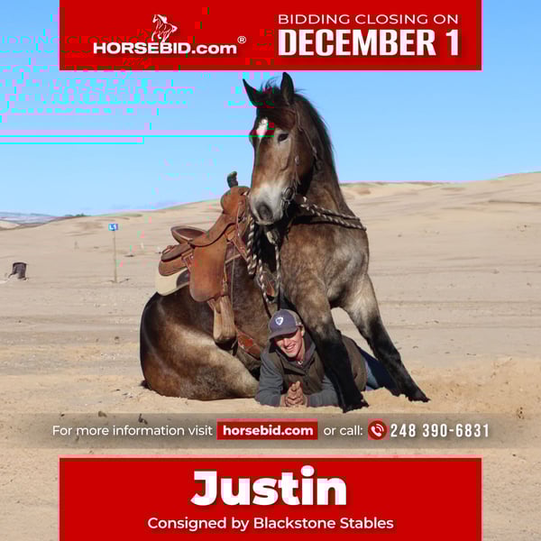 ⚜️ 𝓽𝓱𝓮 𝐇𝐨𝐫𝐬𝐞𝐦𝐚𝐧'𝐬 𝓢𝓱𝓸𝔀𝓬𝓪𝓼𝓮⚜️ Happening now thru MONDAY | DECEMBER 1st - Available EXCLUSIVELY on HorseBid's website! For more details and to register visit: www.Horsebid.com CONSIGNOR CONTACT: Blackstone Stables 248 390-6831 LOCATION: Howell MI BREED: Belgian Draft Haflinger Cross REGISTERED: No COLOR: Dappled Buckskin HEIGHT: 16.2 AGE: 6 GENDER: Gelding His name is Justin and he is the life of the party and the guy everybody wants to know! Not only will he turns heads wherever he goes, he has the most charming demeanor. He is the most beautiful dapped buckskin. When the sun shines on him his dapples have dapples!!! He has an incredible mane and tail. Justin is a 6 year-old, 16.2hh Belgian draft Haflinger cross gelding. He comes equipped with all the bells and whistles from all the fancy buttons in the arena to all of the liberty training. He will sit and lay down with the most subtle of cues, you will look like a horse whisperer working with him. He knows how to side pass, pivot back up, work on and off seat and leg pressure, pick you up at the mounting blocks and much more. He is a powerhouse of strength, versatility, and athleticism. For a horse of his size, Justin moves with incredible grace and fluidity, making him not only a reliable mount but also an athlete in his own right. Whether you are riding Western, English, or bareback, Justin delivers an exceptional experience, seamlessly transitioning between disciplines with ease. What truly makes Justin stand out is his “been there, done that” attitude. He is the definition of a bombproof horse—absolutely safe in any environment. From water front gallops across Lake Michigans picturesque shorelines to a ride across the sleeping bear sand dunes. Justin has seen it all. Justin has been ridden on state roads, in the woods, open fields, and has even gone on a shopping trip to our local farm store! His beautiful golden color black mane and tail and flowing feathers capture everyone’s attention! One glance into his big hazel eyes will steal your heart. Out on the trails, Justin calm, and steady nature shines. Water crossings, tarps, bridges and other common obstacles do not phase him in the slightest. His even temperament makes him an ideal horse for beginners who need a forgiving partner, while his experience and smooth gaits make him just as enjoyable for advanced riders. Justin is the rare horse that adapts to his rider’s needs, making him a perfect fit for anyone from novice to seasoned equestrians. And speaking of smoothness, Justins three gaits are simply unbeatable. His walk, trot, and canter are incredibly fluid and comfortable, making him perfect for all-day rides without leaving you sore. Whether you are working in the arena or exploring the trails, Justin's athleticism and stamina ensure he will keep going strong, mile after mile. In short, Justin is the full package: strikingly beautiful, strong, athletic, and most importantly, safe. If you are looking for a versatile horse Justin is the perfect partner. He is ready to take on anything, whether you are a beginner looking for safety or an experienced rider seeking a smooth, dependable horse for long adventures. Justin lives in Howell, MI 48855. Please call or text Ellesse Schwartz at 248-390-6831 (tel:248-390-6831) for more information.