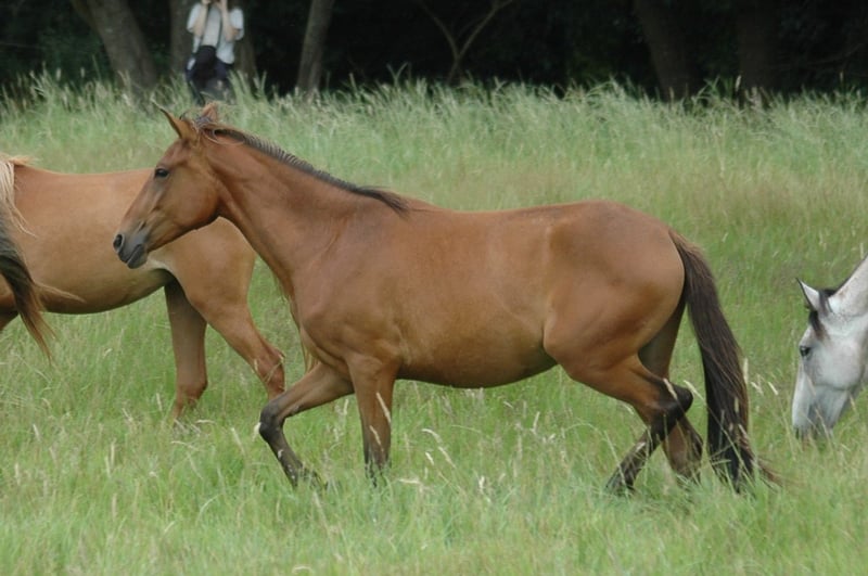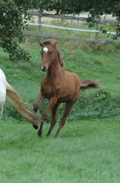 Nadira ist eine junge Stute mit viel Bewegungsfreude und besonders viel Berbertyp, die den großen Hengstlinien in ihrem Pedigree alle Ehre macht. Sie besticht jeden mit ihrem unglaublichen Charme, ihrer rücksichtsvollen, feinen Art, ihrer Ruhe und ihrer Zartheit. Sie lebt mit ihrer Mutter und den Geschwistern in unserer großen, gemischtaltrigen Herde. Nadira wurde regelmäßig entwurmt und geimpft. Eine bedarfsgerechte, mineralreiche Fütterung gehört bei uns selbstverständlich dazu. Sie wurde von klein auf im Hufegeben und Führen geschult. Das Berberpferd - ein echter Allrounder, das ideale Freizeitpferd! Ein Berber tut nichts, wovon er nicht auch überzeugt ist. Oft mit Sturheit verwechselt, ist es gerade diese Eigenschaft, die Intelligenz und Selbstständigkeit, die so begeistert. Seine innere Ruhe und Überlegtheit in Verbindung mit einer hohen Sensibilität ist legendär und fasziniert. Unsere Fohlen wachsen im großen, gemischtaltrigen Herdenverband auf. Sie werden mit viel Liebe aufgezogen und sind von Geburt an ein Teil der Familie, wie es dem menschenbezogenen Charakter der Berber entgegen kommt. Neben Nadira warten noch einige Fohlen und Jungpferde auf ihren Herzensmenschen. Wir freuen uns über Anfragen, gerne auch per WhatsApp 015781959559 Mehr Infos auf facebook oder berber-al-aatik.de
